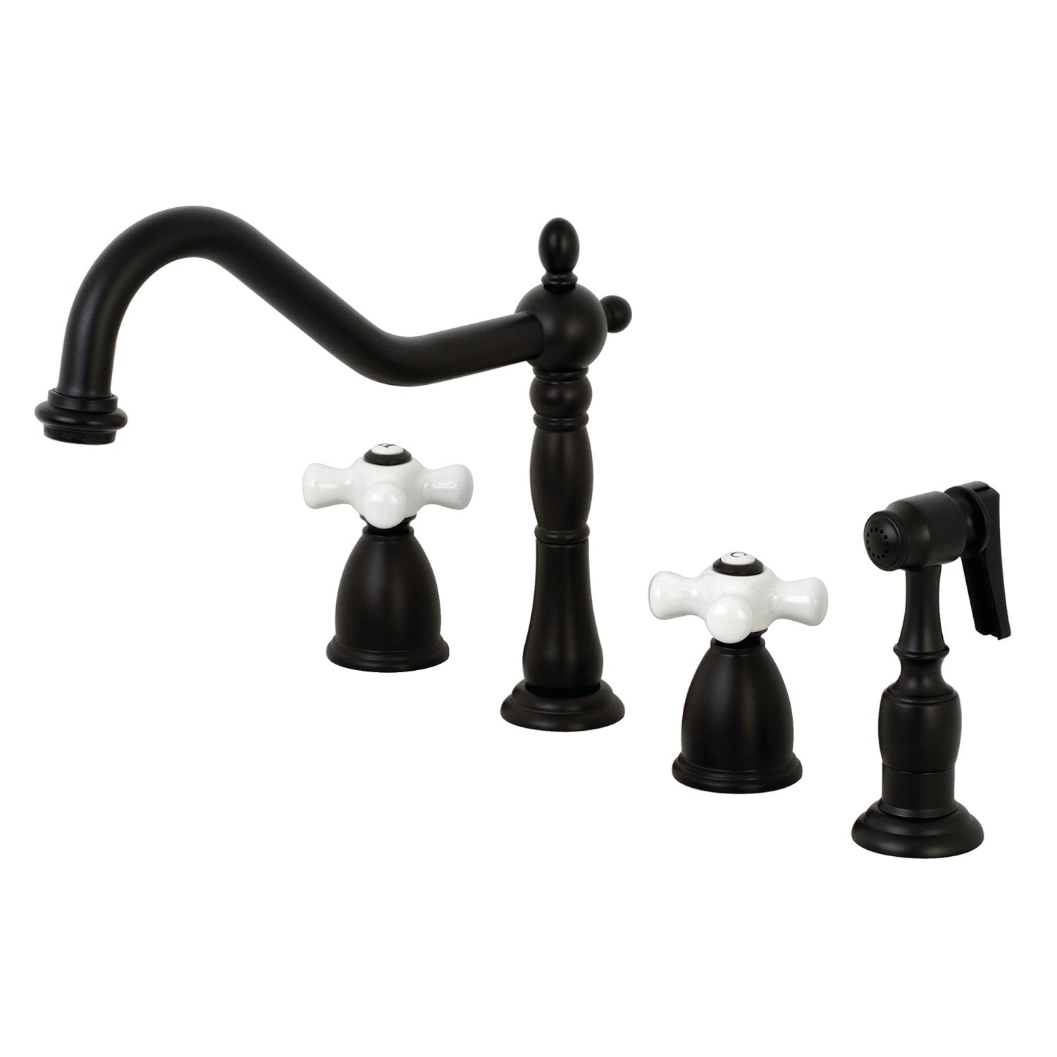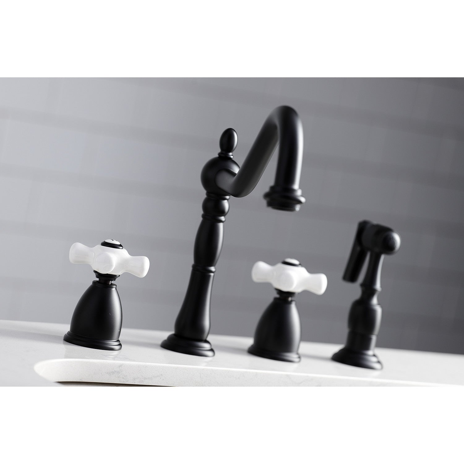 Heritage KB1790PXBS Two-Handle 4-Hole Deck Mount Widespread Kitchen Faucet with Brass Sprayer, Matte Black