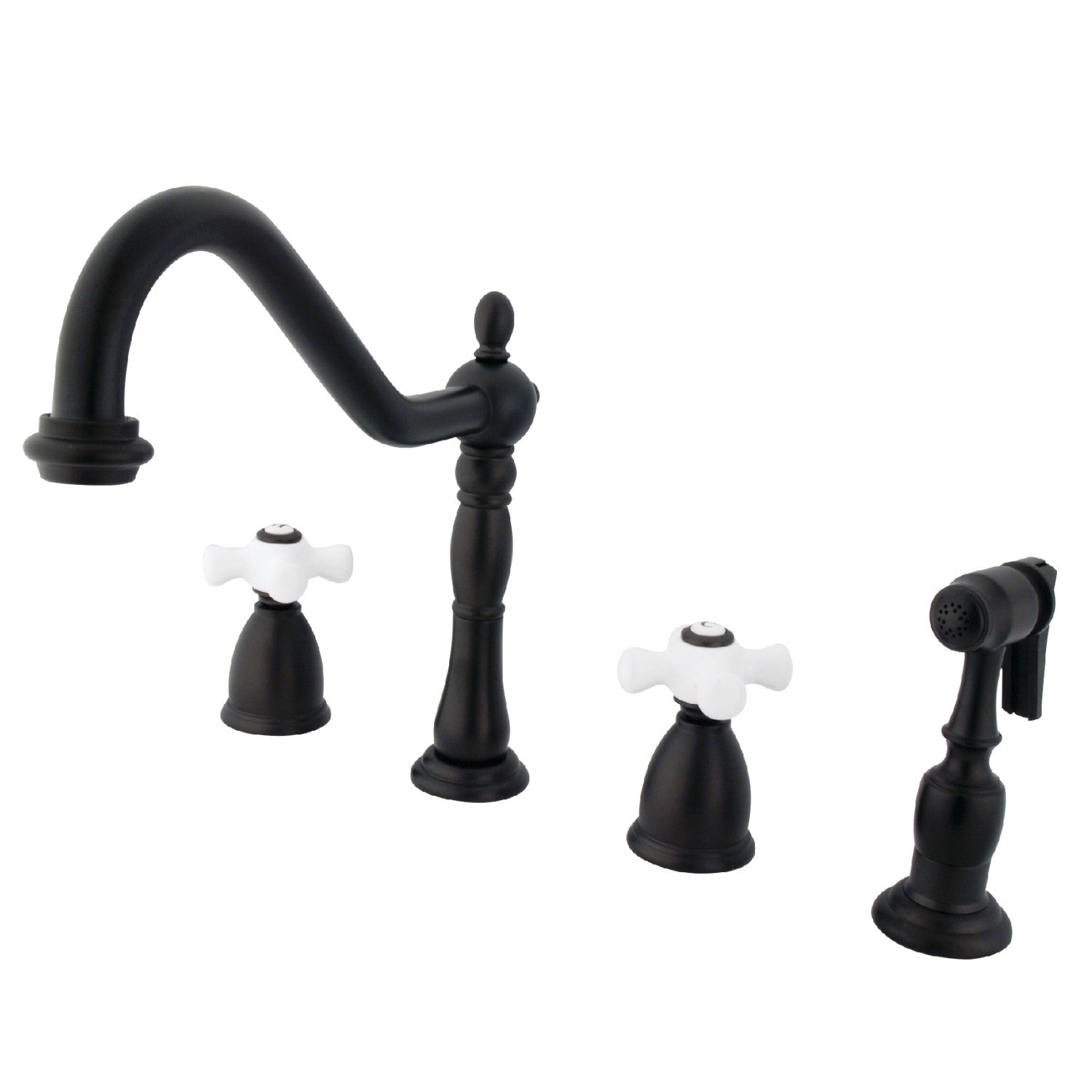 Heritage KB1795PXBS Two-Handle 4-Hole Deck Mount Widespread Kitchen Faucet with Brass Sprayer, Oil Rubbed Bronze