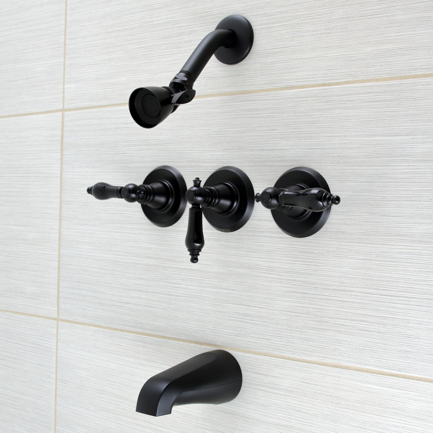 Duchess KB230AKL Three-Handle 5-Hole Wall Mount Tub and Shower Faucet, Matte Black