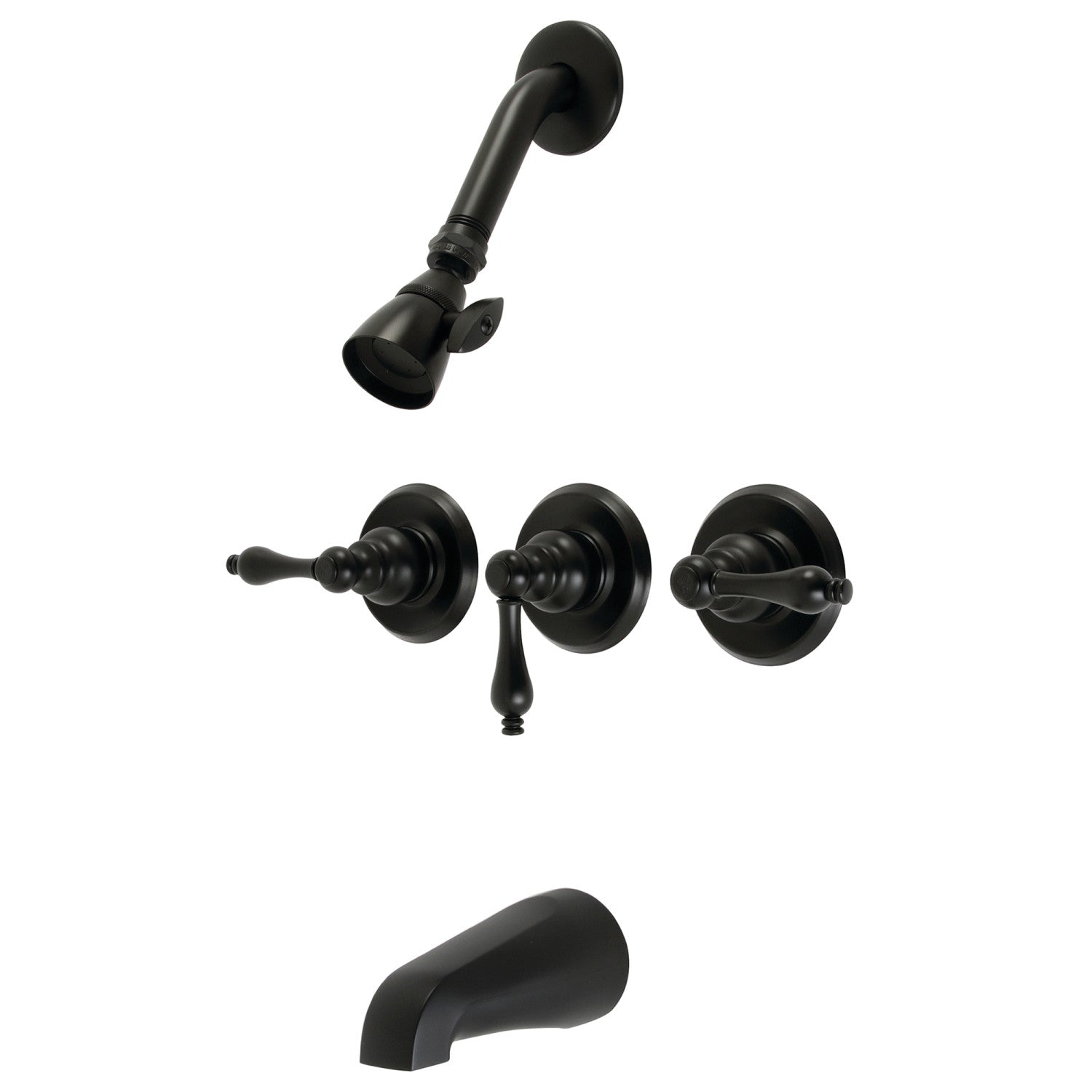 Victorian KB230AL Three-Handle 5-Hole Wall Mount Tub and Shower Faucet, Matte Black