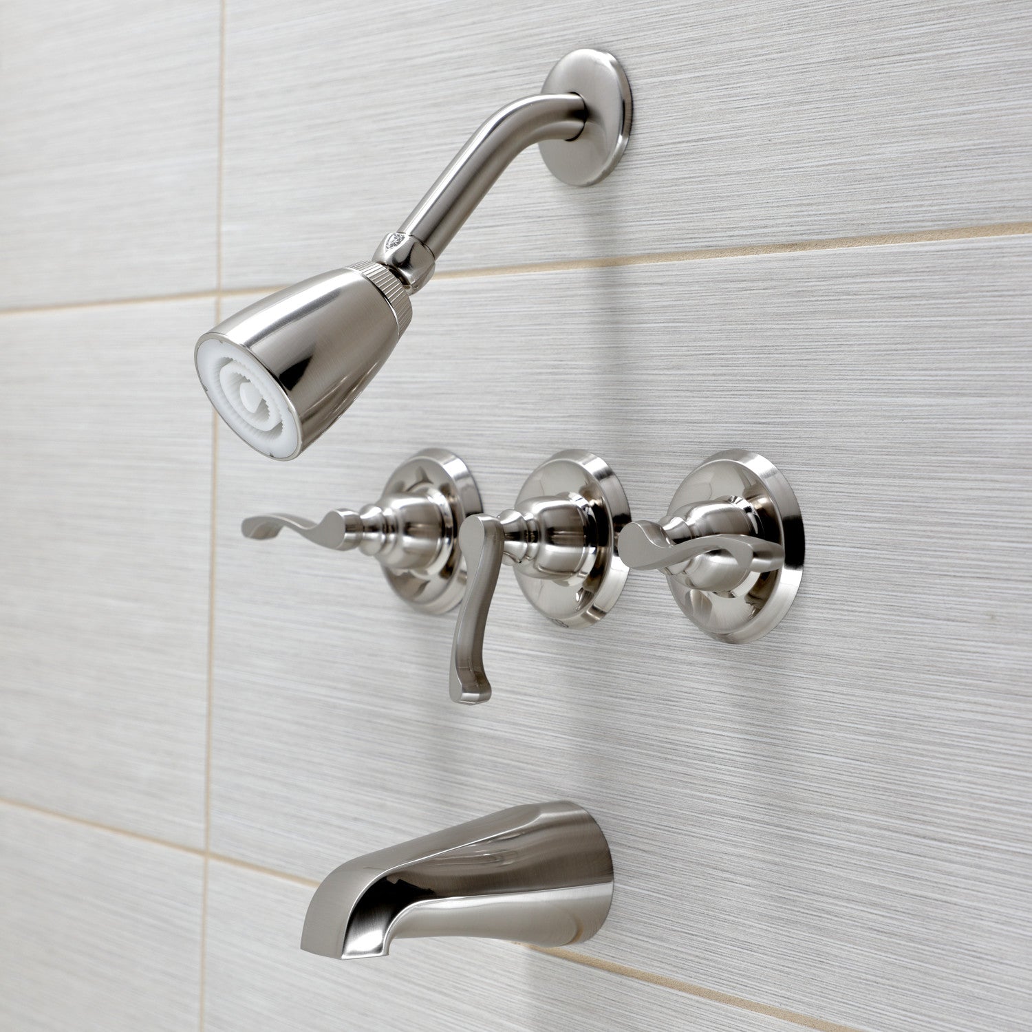 Royal KB238FL Three-Handle 5-Hole Wall Mount Tub and Shower Faucet, Brushed Nickel