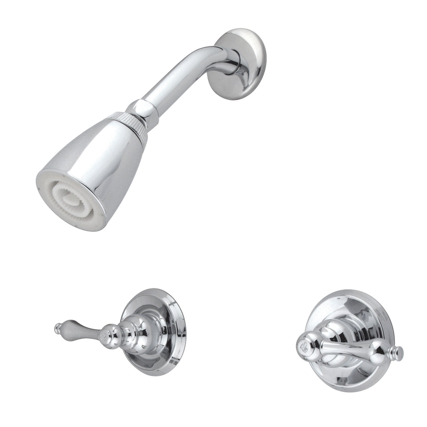 The exquisite design of this shower faucet tastefully flatters the elegant architecture of traditional homes with its fine detailing. Complete with easy-to-turn lever handles, an optimum bathing experience awaits. Enjoy the sturdy brass construction and premium polished chrome finish for a fixture that will last for years to come. Internal valve hardware is included for your use.