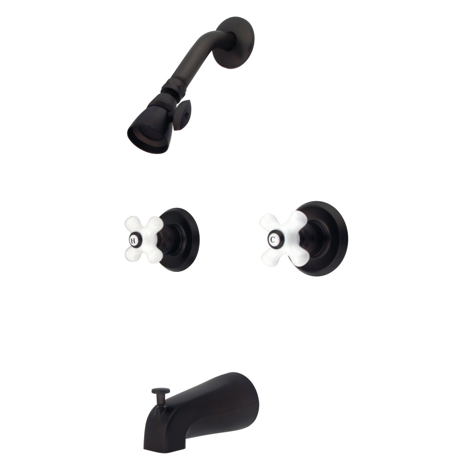 The timeless appeal of this tub and shower faucet's sleek and simple design transforms any bathroom into a destination location. Complete with easy-to-turn cross handles, an optimum bathing experience awaits. Enjoy the sturdy brass construction and premium oil rubbed bronze finish for a fixture that will last for years to come. Internal valve hardware is included for your use.