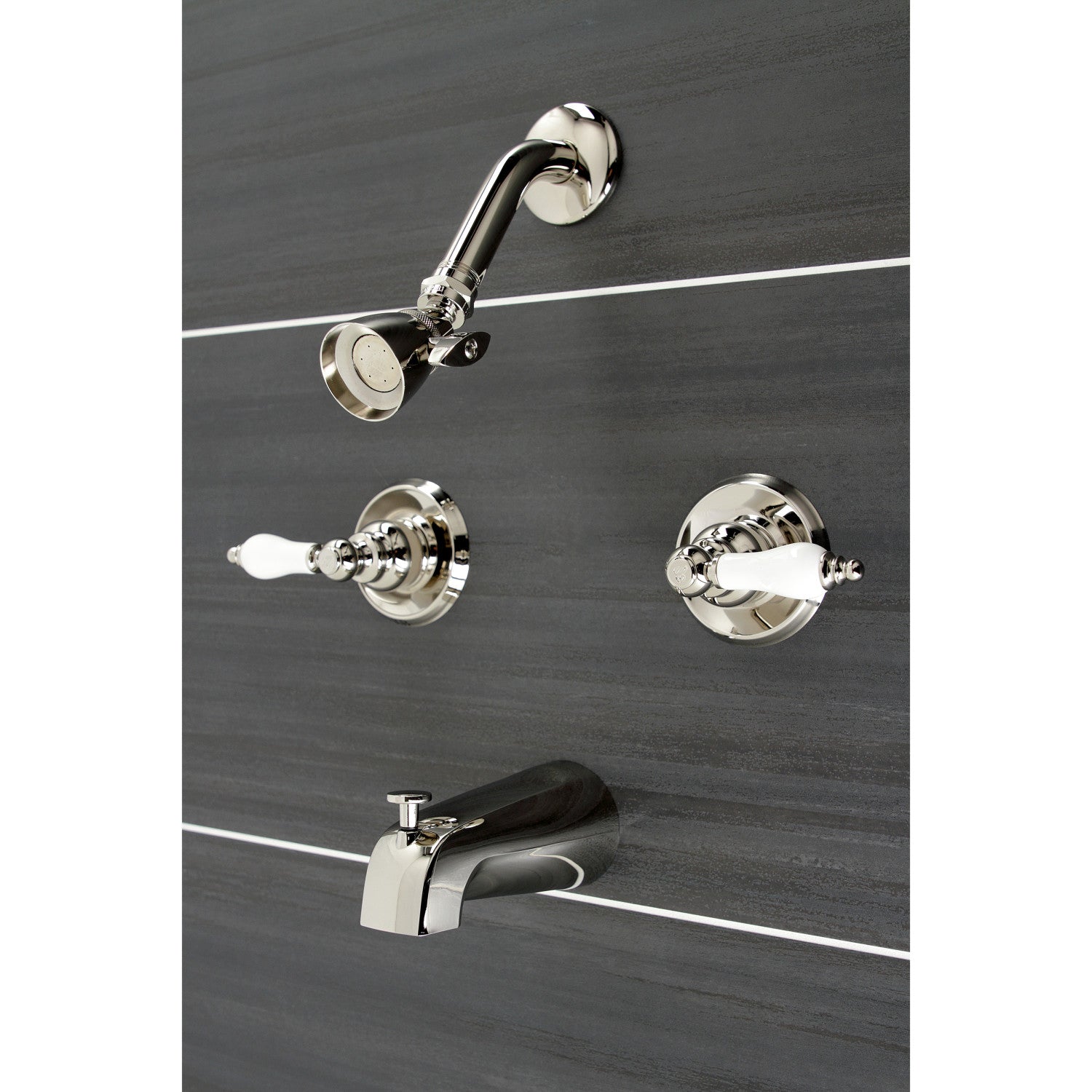 The exquisite design of this tub and shower faucet tastefully flatters the elegant architecture of traditional homes with its fine detailing. Complete with easy-to-turn lever handles, an optimum bathing experience awaits. Enjoy the sturdy brass construction and premium polished nickel finish for a fixture that will last for years to come. Internal valve hardware is included for your use.