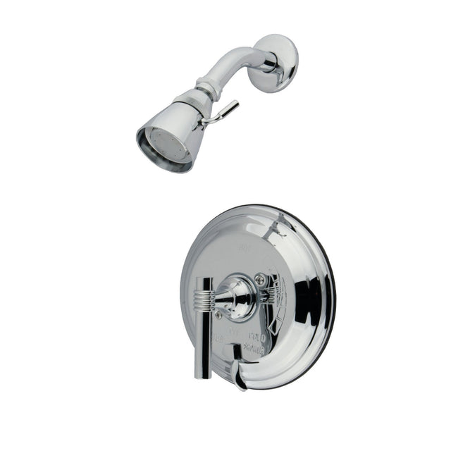 This shower faucet's modern features create a bold and edgy design in your bathroom. Complete with an easy-to-turn lever handle, an optimum bathing experience awaits. Enjoy the sturdy brass construction and premium polished chrome finish for a fixture that will last for years to come. A pressure balanced valve is included for safety and protection against accidental burns.
