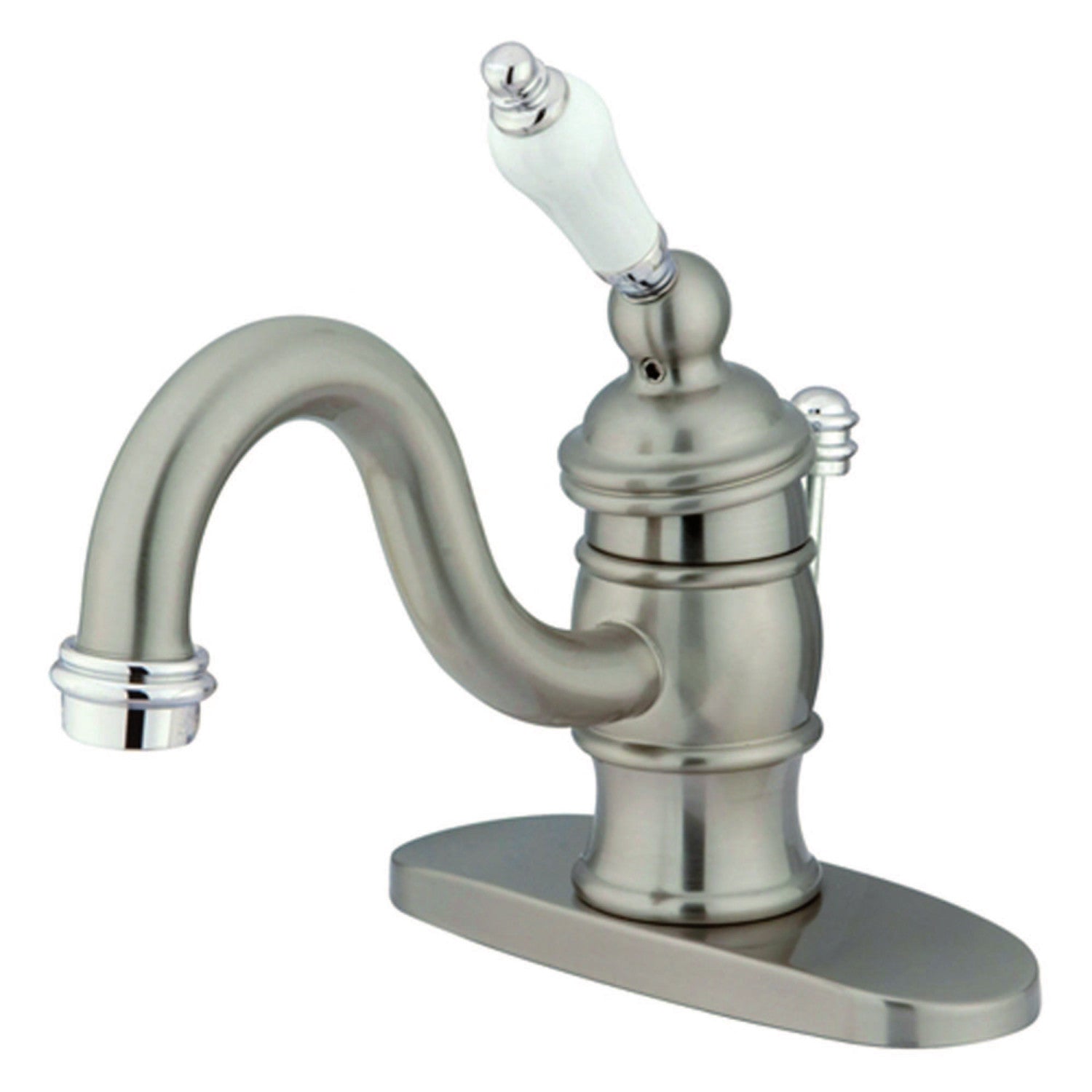 Returning to the nooks and curios of design from the Victorian Era, this faucet breathes modern excellence in performance while radiating vintage opulence. Single-hole bathroom faucets provide a more streamlined look. Also, they will allow your bathroom to appear more spacious with the limited counter space they require. The Victorian single-handle bathroom faucet and its featured sturdy brass construction and premium brushed nickel/polished chrome finish are guaranteed to glamorize your home's traditional ensemble for years to come. Cultivate the vintage European aura and its lasting durability within your own home with this stunning fixture. A matching finish drain is also included.