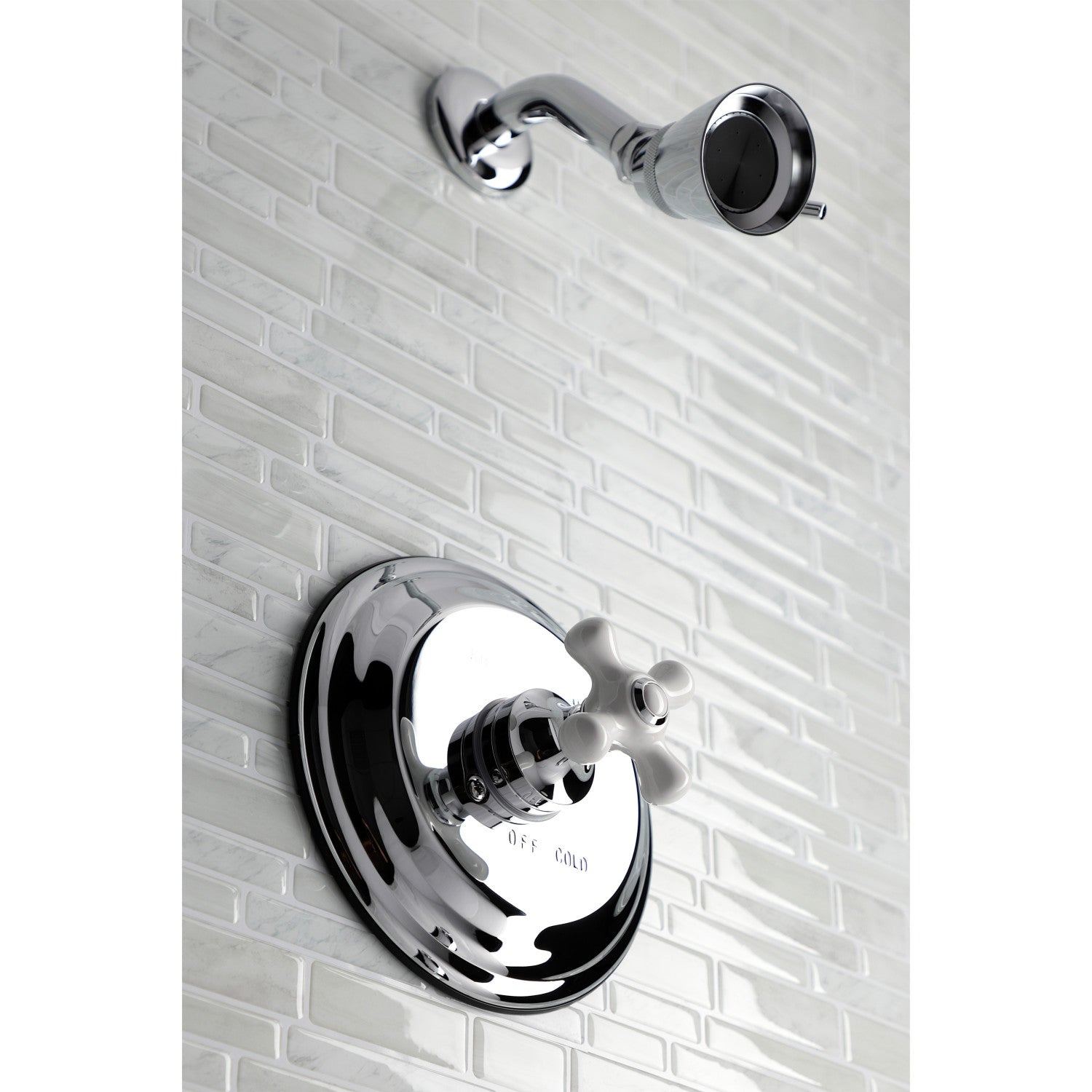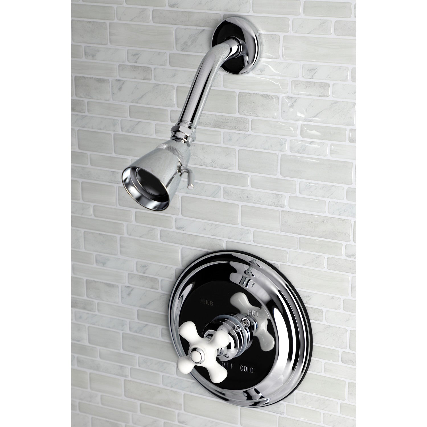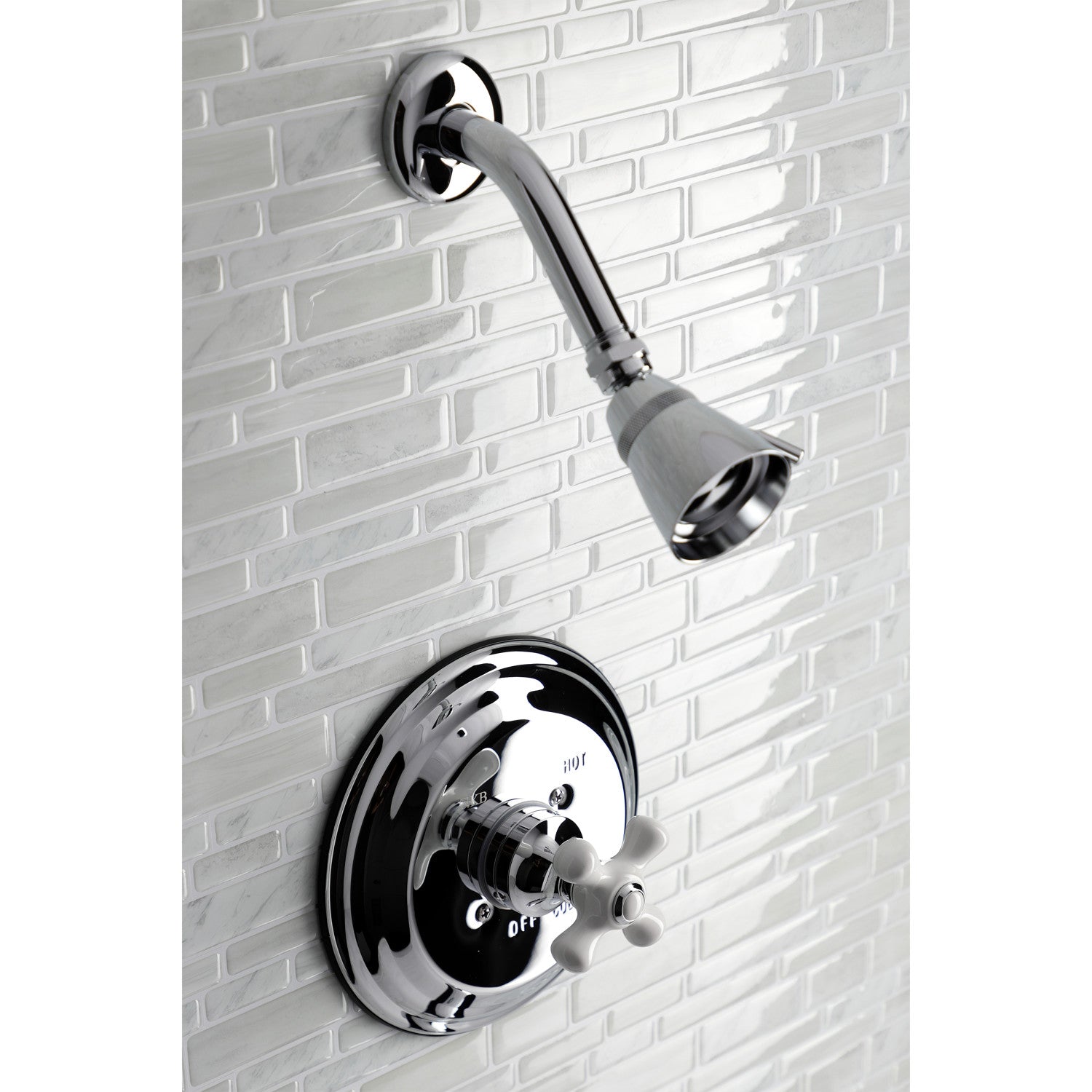 The exquisite design of this shower faucet tastefully flatters the elegant architecture of traditional homes with its fine detailing. Complete with an easy-to-turn cross handle, an optimum bathing experience awaits. Enjoy the sturdy brass construction and premium polished chrome finish for a fixture that will last for years to come. A pressure balanced valve is included for safety and protection against accidental burns.