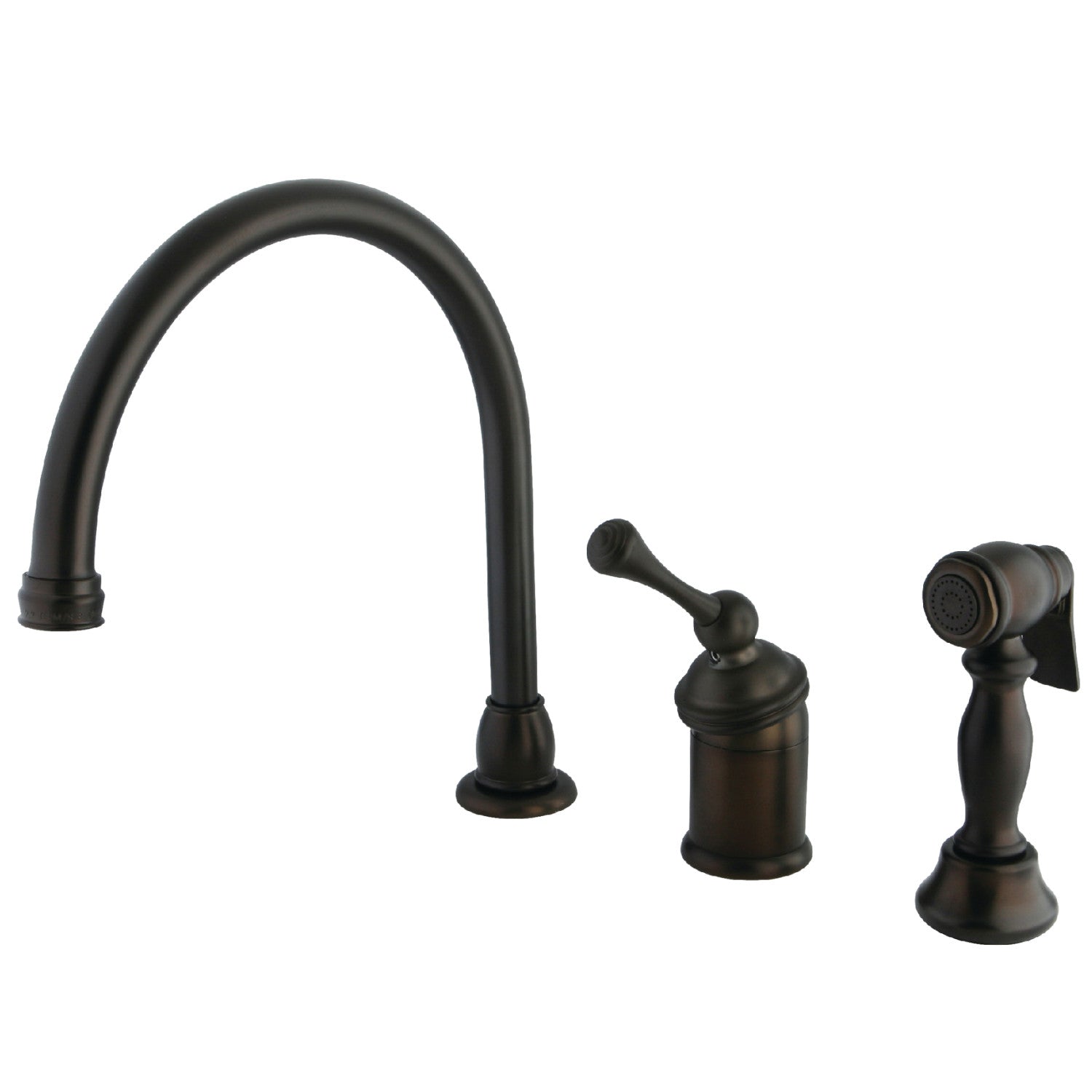 Georgian KB3815BLBS Single-Handle 3-Hole Deck Mount Widespread Kitchen Faucet with Brass Sprayer, Oil Rubbed Bronze
