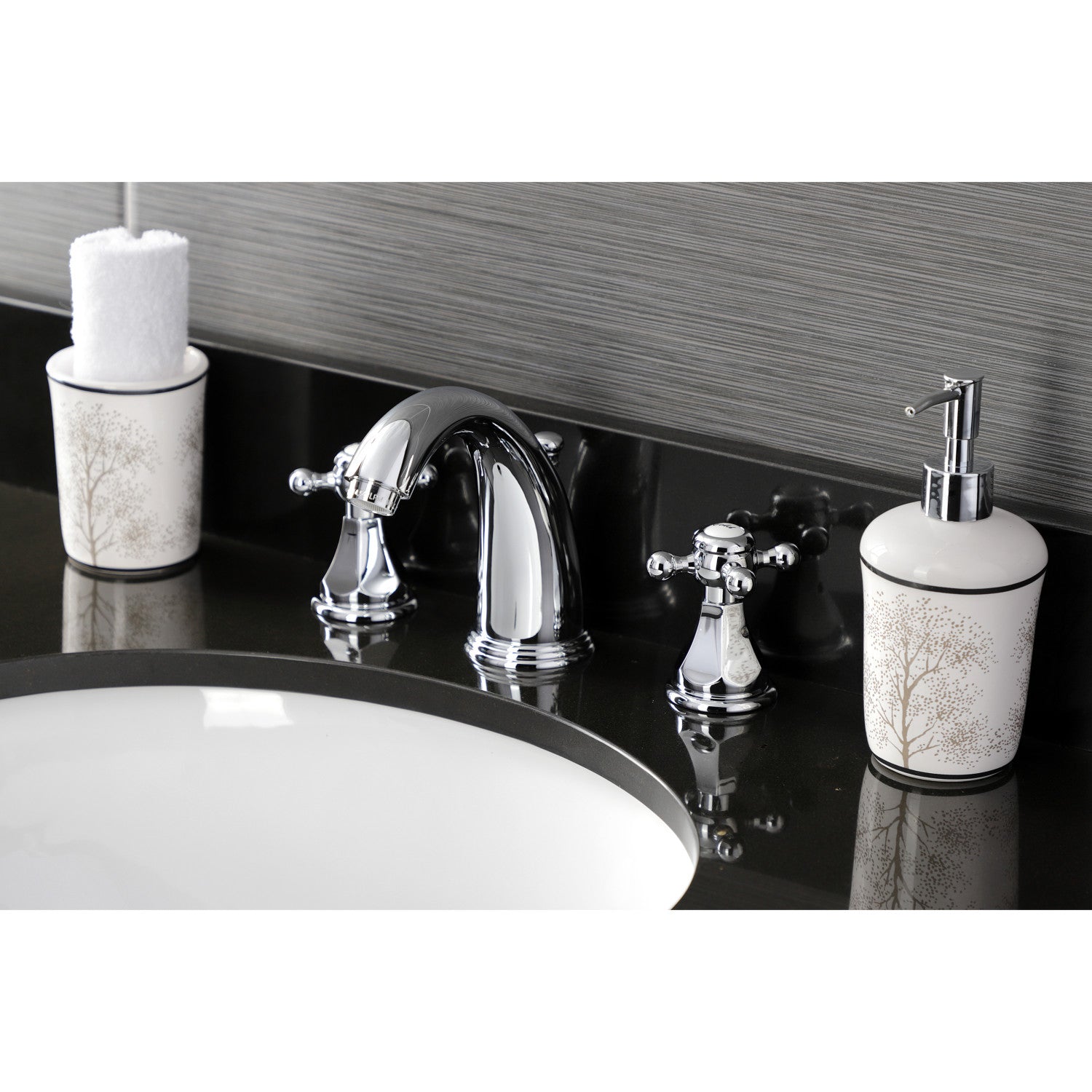 Metropolitan KB4981BX Two-Handle 3-Hole Deck Mount Widespread Bathroom Faucet with Plastic Pop-Up, Polished Chrome