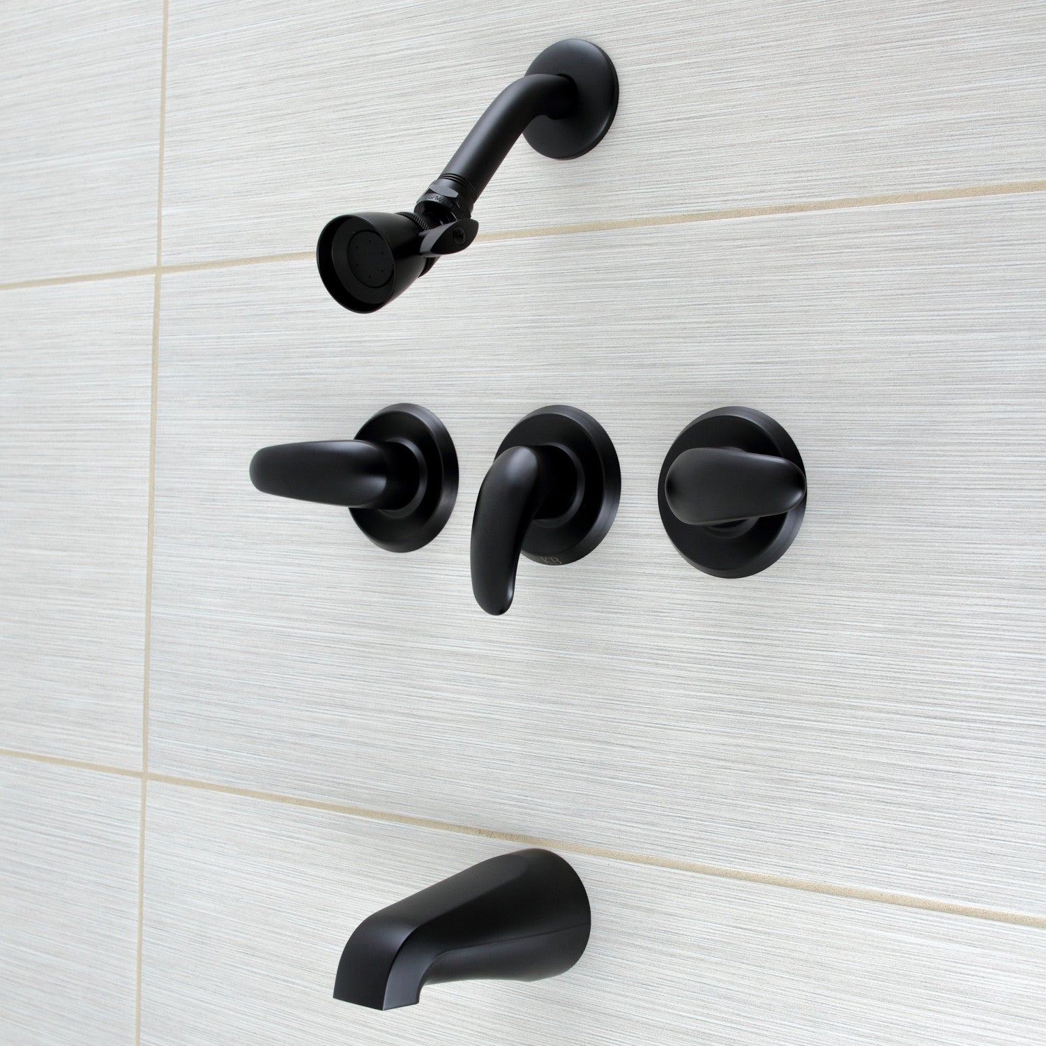 Legacy KB6230LL Three-Handle 5-Hole Wall Mount Tub and Shower Faucet, Matte Black