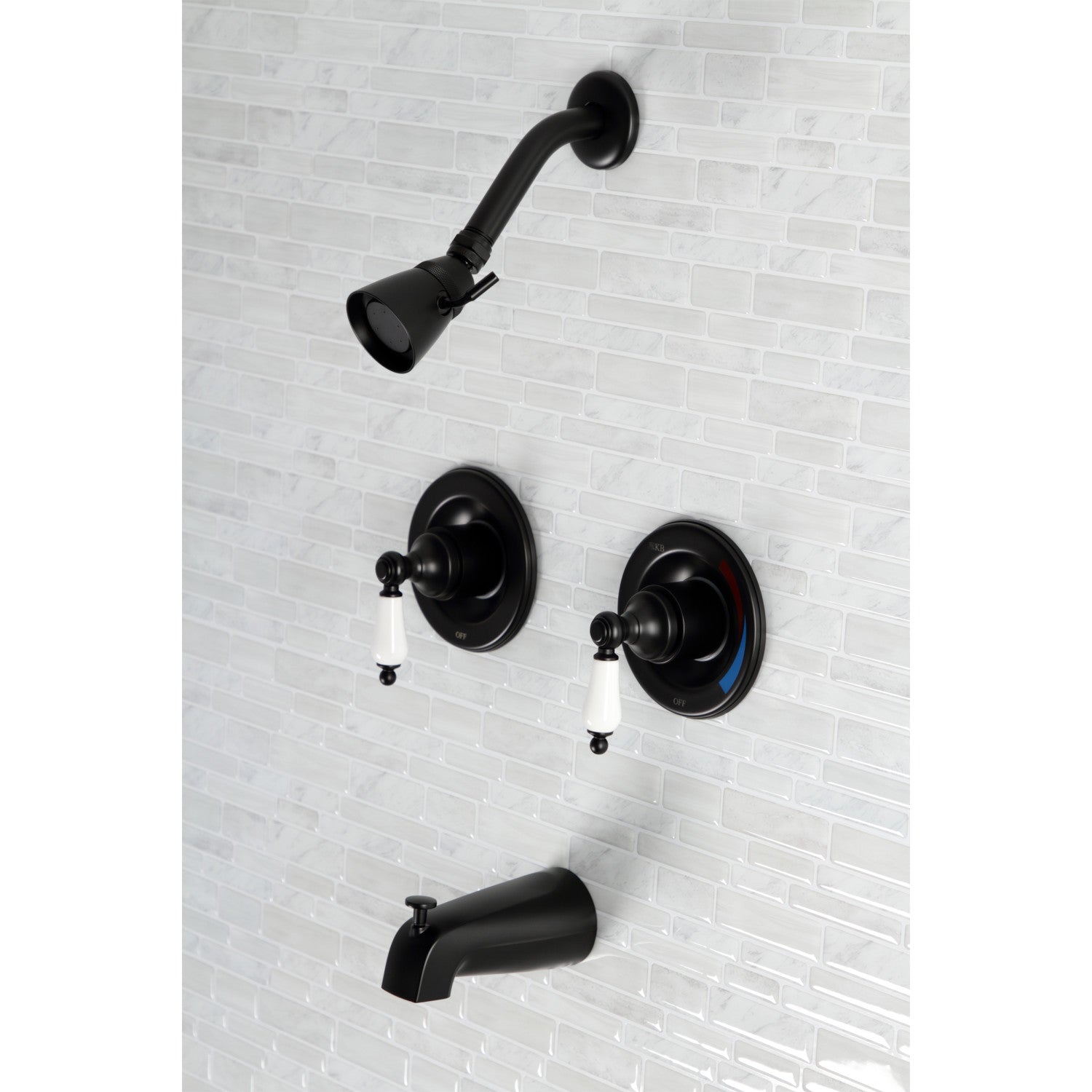 Vintage KB660PL Two-Handle 4-Hole Wall Mount Tub and Shower Faucet, Matte Black