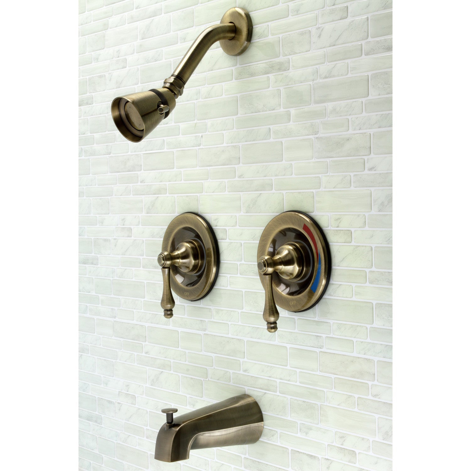 Vintage KB663AL Two-Handle 4-Hole Wall Mount Tub and Shower Faucet, Antique Brass