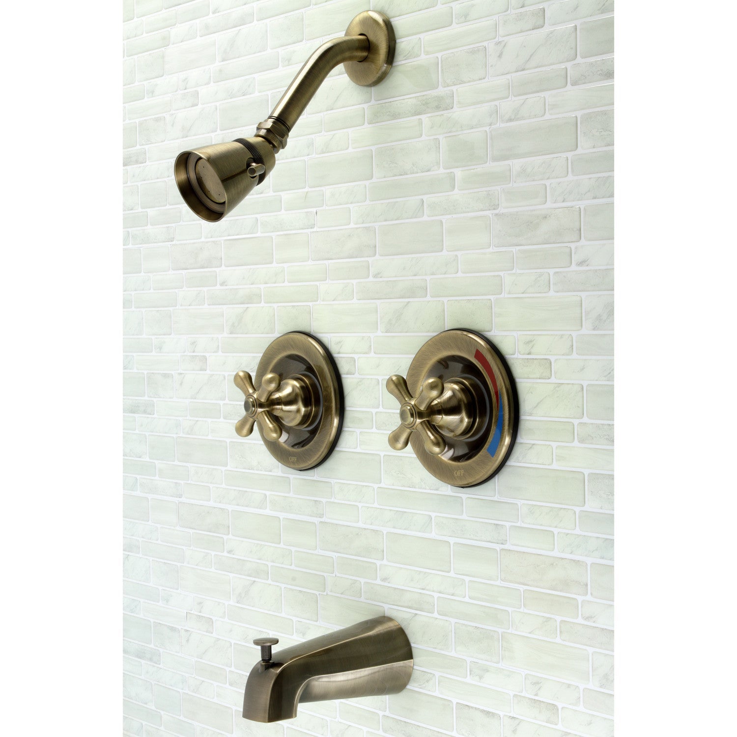 Vintage KB663AX Two-Handle 4-Hole Wall Mount Tub and Shower Faucet, Antique Brass