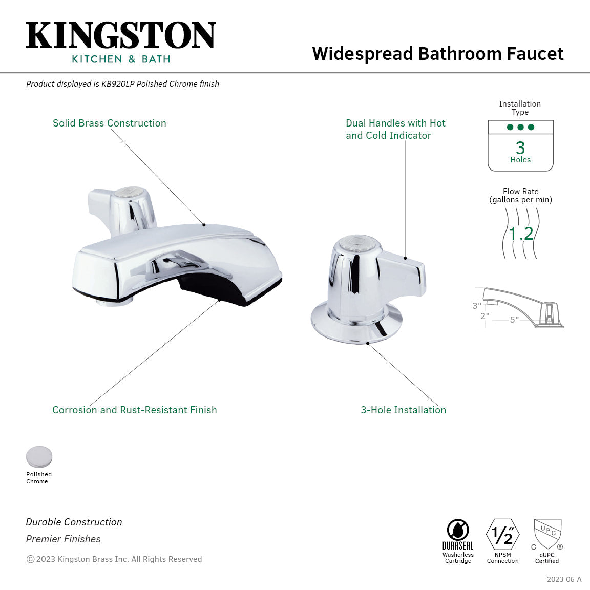 Americana KB920LP Two-Handle 3-Hole Deck Mount Widespread Bathroom Faucet, Polished Chrome
