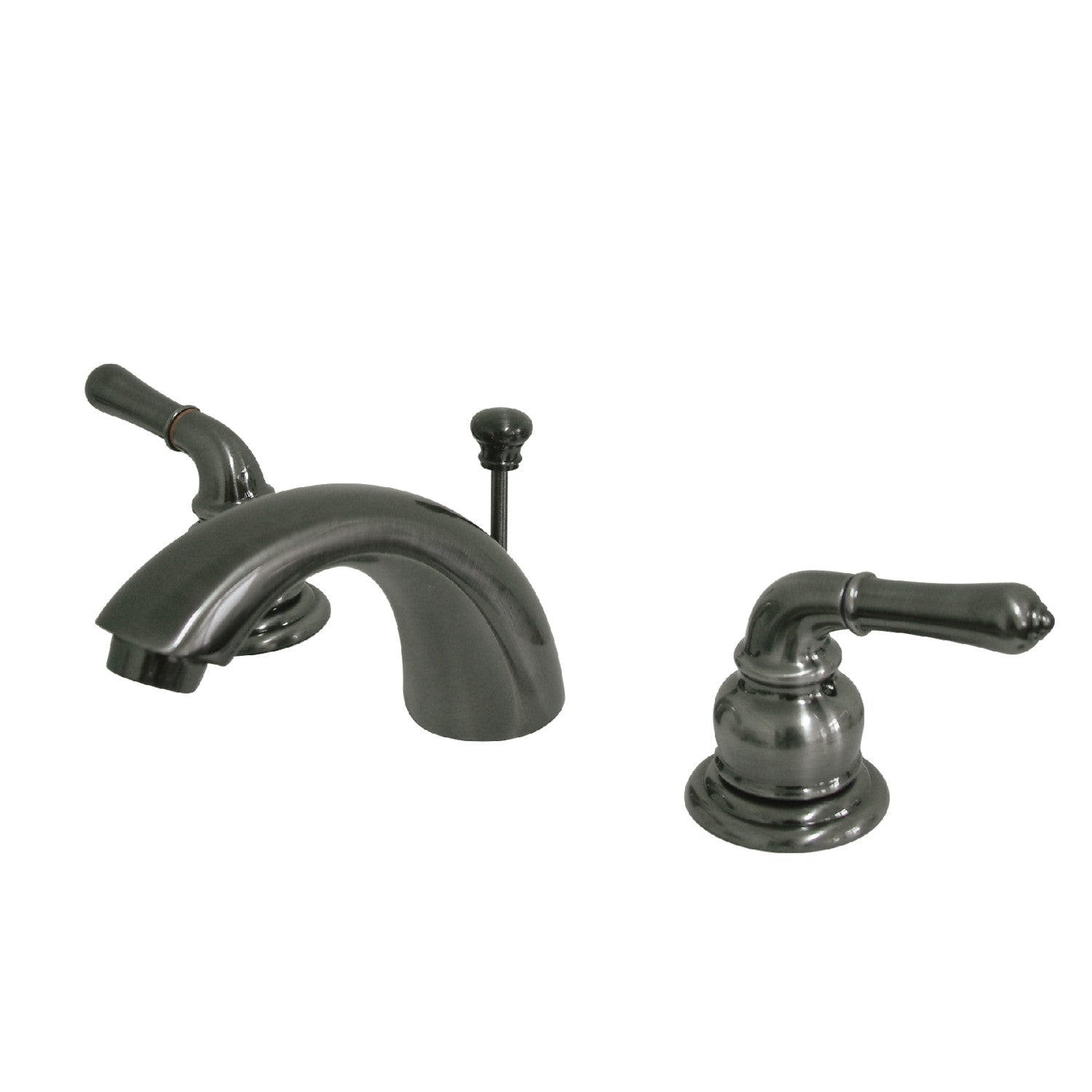 Admired for its perfect combination of unparalleled traditionalism with a flavor of unique characteristics, this faucet offers timeless appeal and eye-catching design. Emulating the widespread look, mini-widespread bathroom faucets are for those that love detailed facets and clean lines. These compact faucets provide all of the design elements of a quality faucet without the need for a deck plate in 3-hole sinks. The Magellan mini-widespread bathroom faucet and its featured sturdy brass construction and premium black stainless finish are guaranteed to glamorize your home's traditional ensemble for years to come. Embrace the touch of extraordinariness offered by this fixture and make it an addition to your home. A matching finish drain is also included.