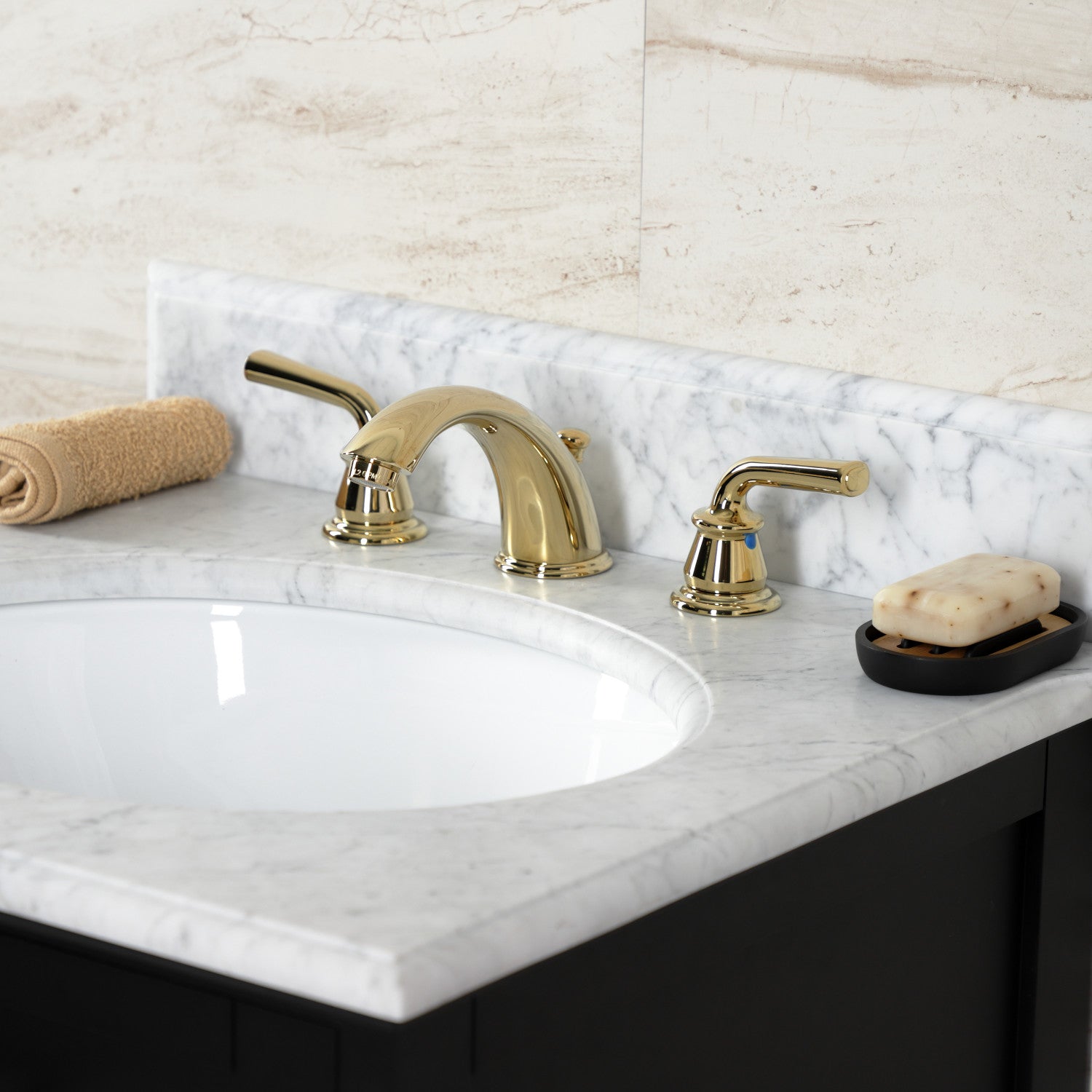 Classical artistry from the late 19th Century to early 20th Century is mirrored beautifully within this faucet's traditional charm. Ideal for more spacious bathrooms, widespread faucets are more spread apart and feature a 3-hole installation. The Restoration widespread bathroom faucet and its featured sturdy brass construction and premium polished brass finish are guaranteed to glamorize your home's traditional ensemble for years to come. Bring this faucet to your home to offer a touch of old design and exquisite detail. A matching finish drain is also included.