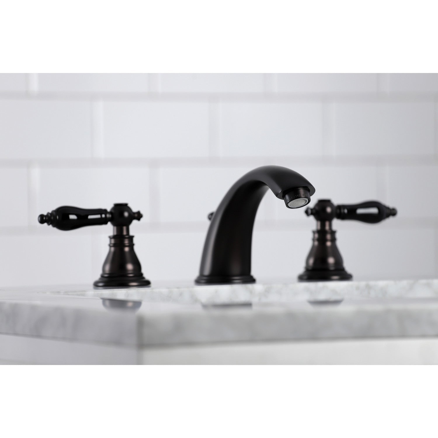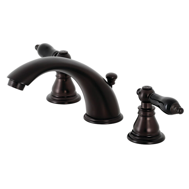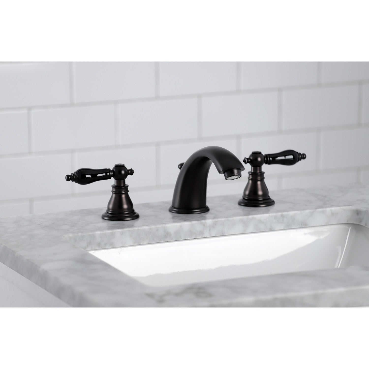 Crafted in commendations to English nobility, the exemplary design of this faucet manifests regality and elegance with its black porcelain handles. Ideal for more spacious bathrooms, widespread faucets are more spread apart and feature a 3-hole installation. The Duchess widespread bathroom faucet with pop-up drain and its featured sturdy brass construction and premium oil rubbed bronze finish are guaranteed to glamorize your home's traditional ensemble for years to come. Glamorize your home today with the traditional elegance of this faucet. A matching finish drain is also included.