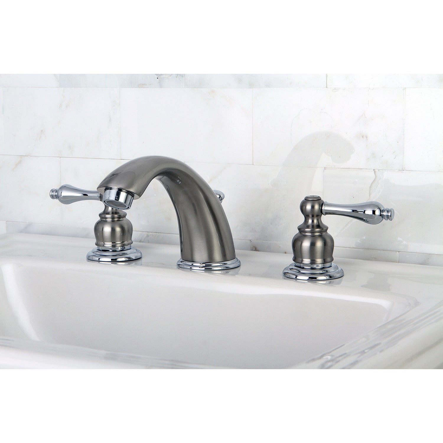 Victorian KB977AL Two-Handle 3-Hole Deck Mount Widespread Bathroom Faucet with Plastic Pop-Up, Brushed Nickel/Polished Chrome