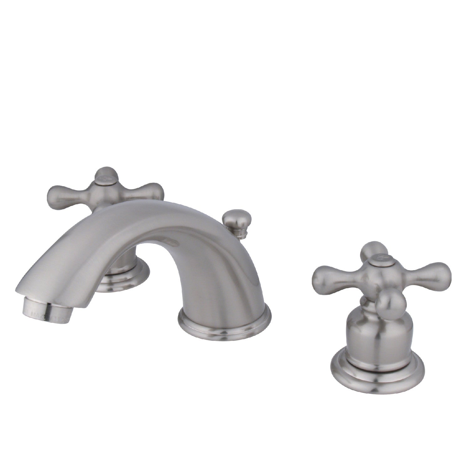 Victorian KB978X Two-Handle 3-Hole Deck Mount Widespread Bathroom Faucet with Plastic Pop-Up, Brushed Nickel