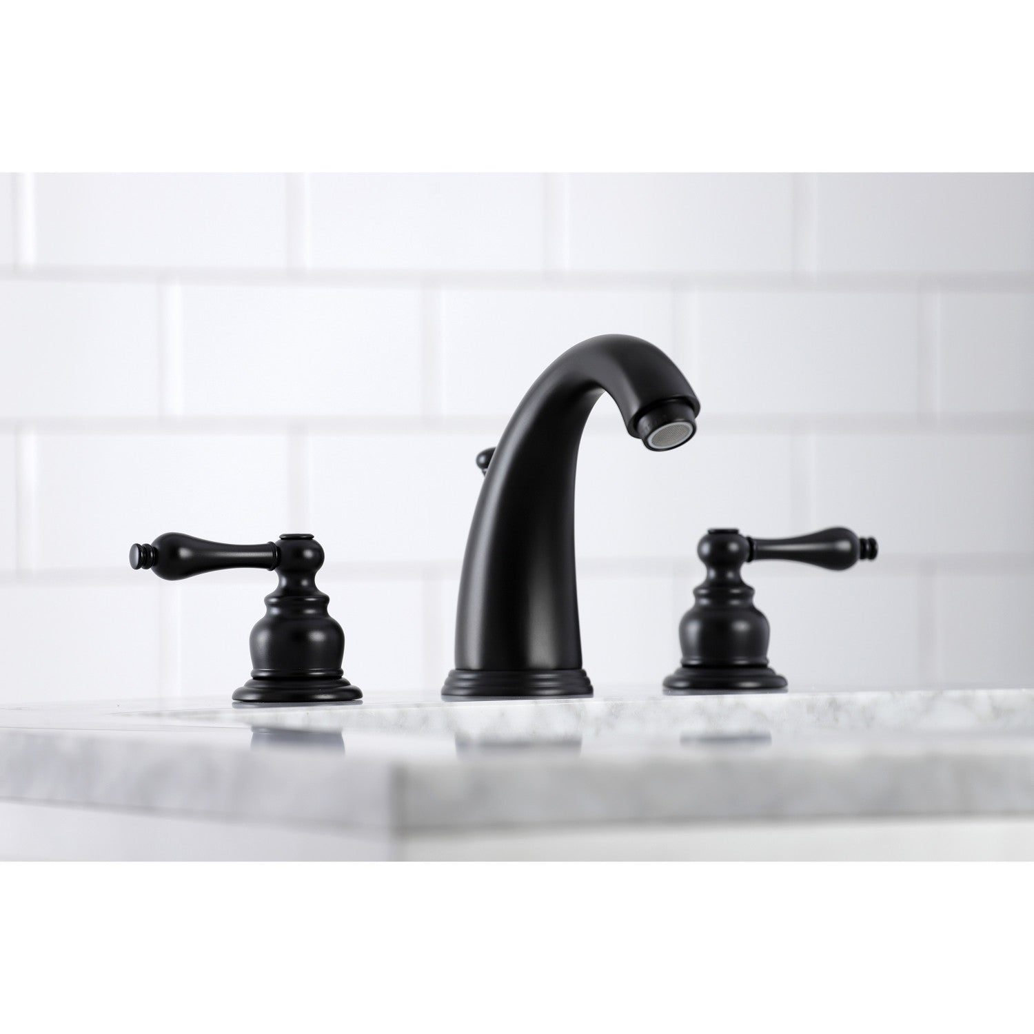 Returning to the nooks and curios of design from the Victorian Era, this faucet breathes modern excellence in performance while radiating vintage opulence. Ideal for more spacious bathrooms, widespread faucets are more spread apart and feature a 3-hole installation. The Victorian 8 in. widespread bathroom faucet and its featured sturdy brass construction and premium matte black finish are guaranteed to glamorize your home's traditional ensemble for years to come. Cultivate the vintage European aura and its lasting durability within your own home with this stunning fixture. A matching finish drain is also included.