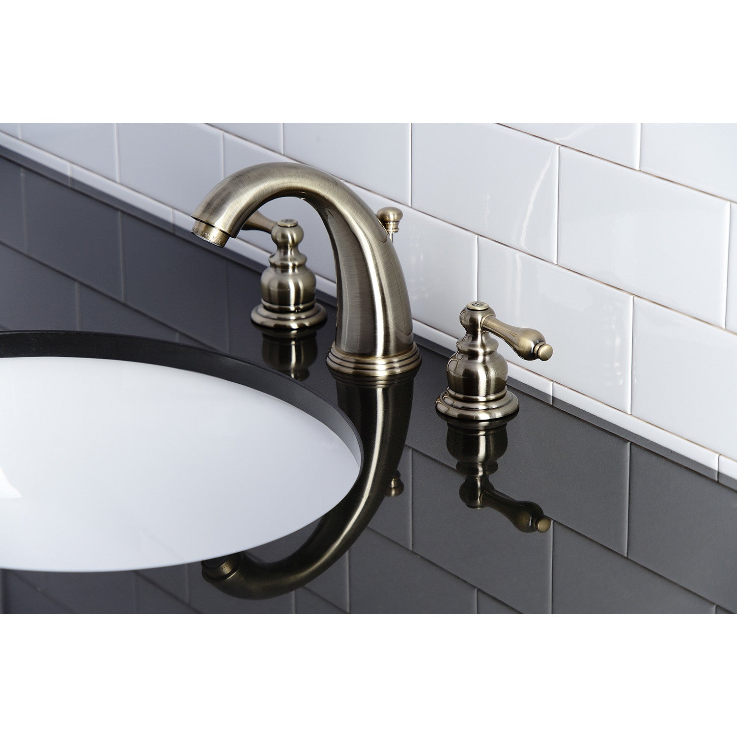Victorian KB983ALAB Two-Handle 3-Hole Deck Mount Widespread Bathroom Faucet with Plastic Pop-Up, Antique Brass
