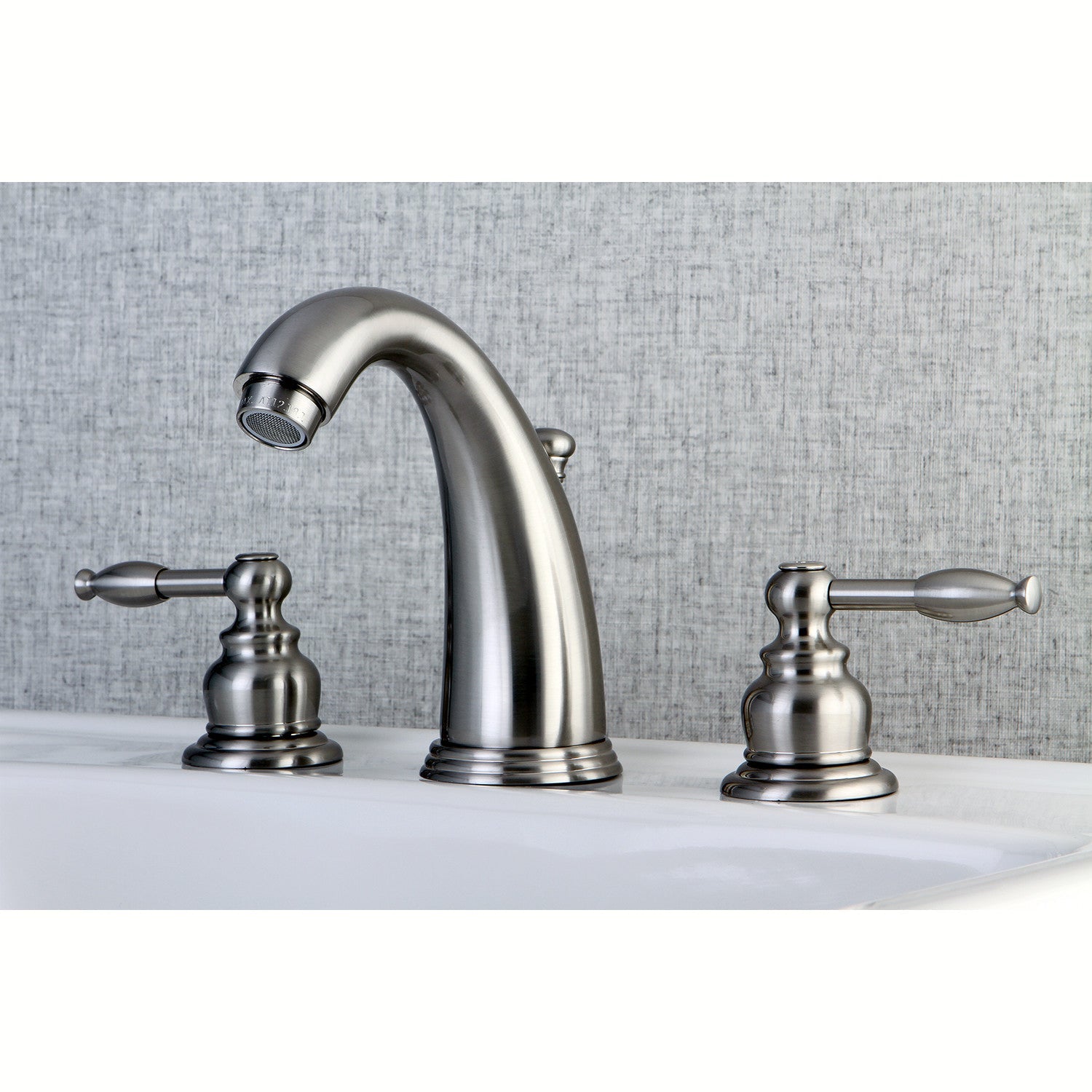 The exquisite design of this faucet tastefully flatters the elegant architecture of traditional homes with its fine detailing. Ideal for more spacious bathrooms, widespread faucets are more spread apart and feature a 3-hole installation. The Knight 8-inch widespread bathroom faucet and its featured sturdy brass construction and premium brushed nickel finish are guaranteed to glamorize your home's traditional ensemble for years to come. A matching finish drain is also included.