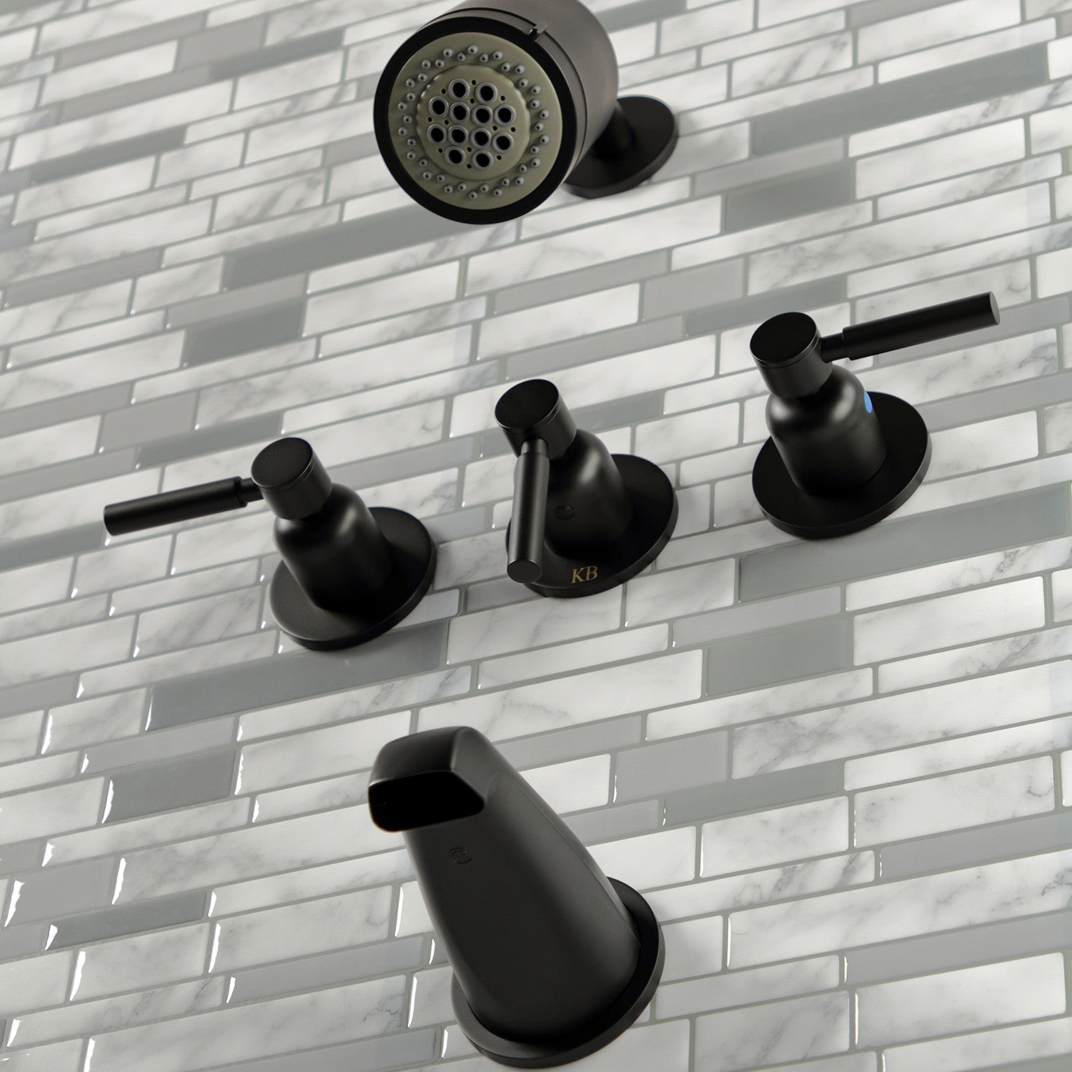 Concord KBX8130DL Three-Handle 5-Hole Wall Mount Tub and Shower Faucet, Matte Black