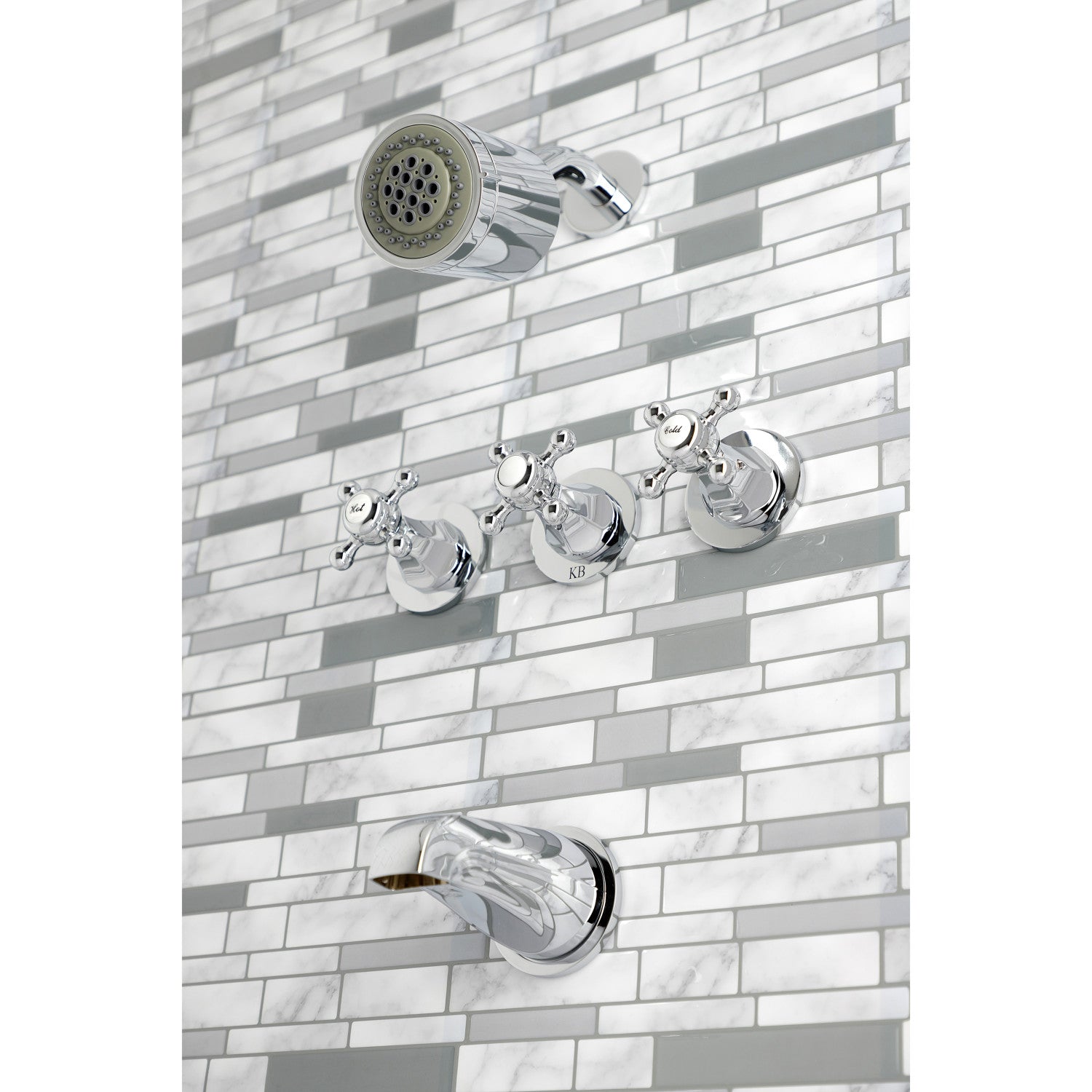 Metropolitan KBX8131BX Three-Handle 5-Hole Wall Mount Tub and Shower Faucet, Polished Chrome
