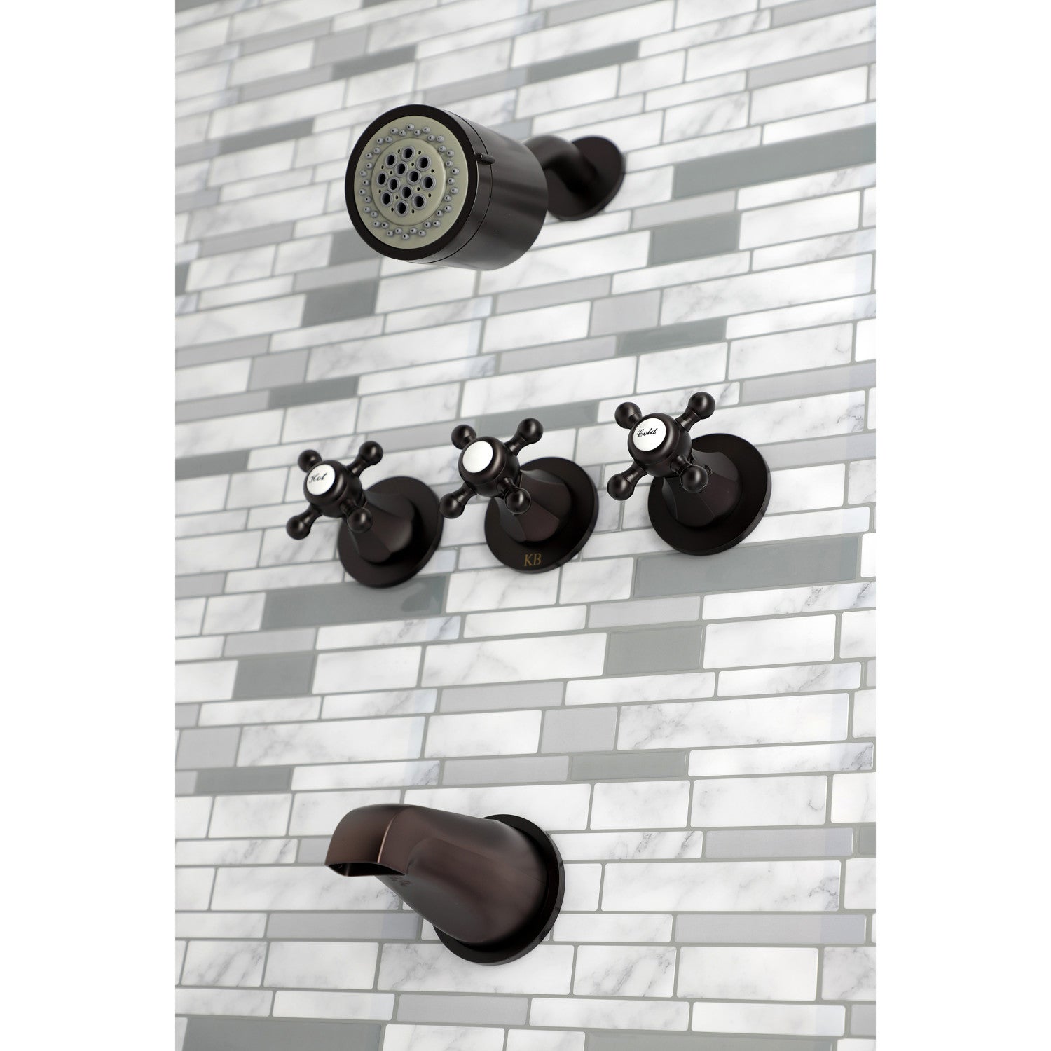 Metropolitan KBX8135BX Three-Handle 5-Hole Wall Mount Tub and Shower Faucet, Oil Rubbed Bronze
