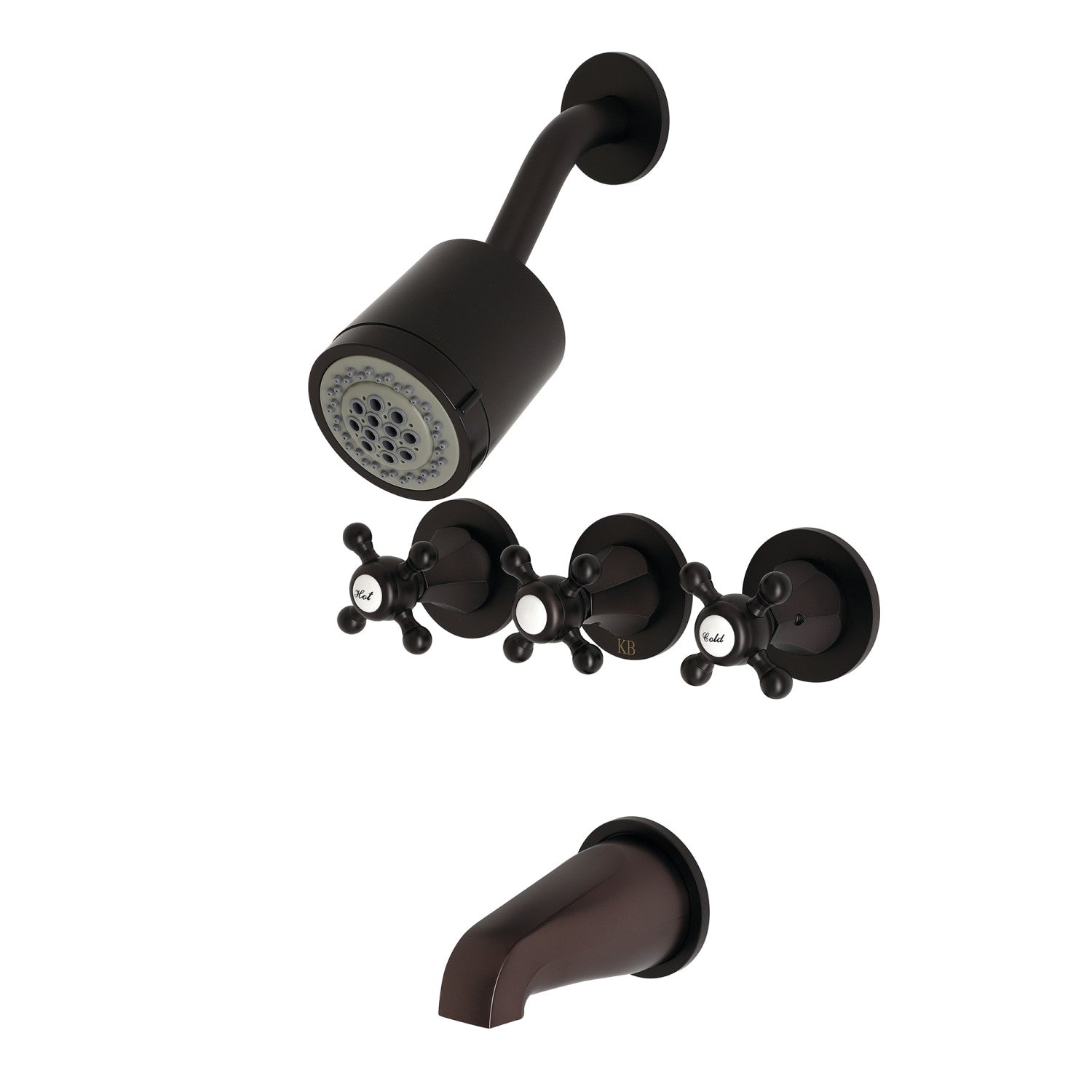 Complete with easy-to-turn triple cross handles, an optimum bathing experience awaits. Enjoy the sturdy brass construction and premium matte black finish for a fixture that will last for years to come. Bring beauty and magnificence to your washroom with the subtle detailing of this tub and shower faucet. Internal valve hardware is included for your use.