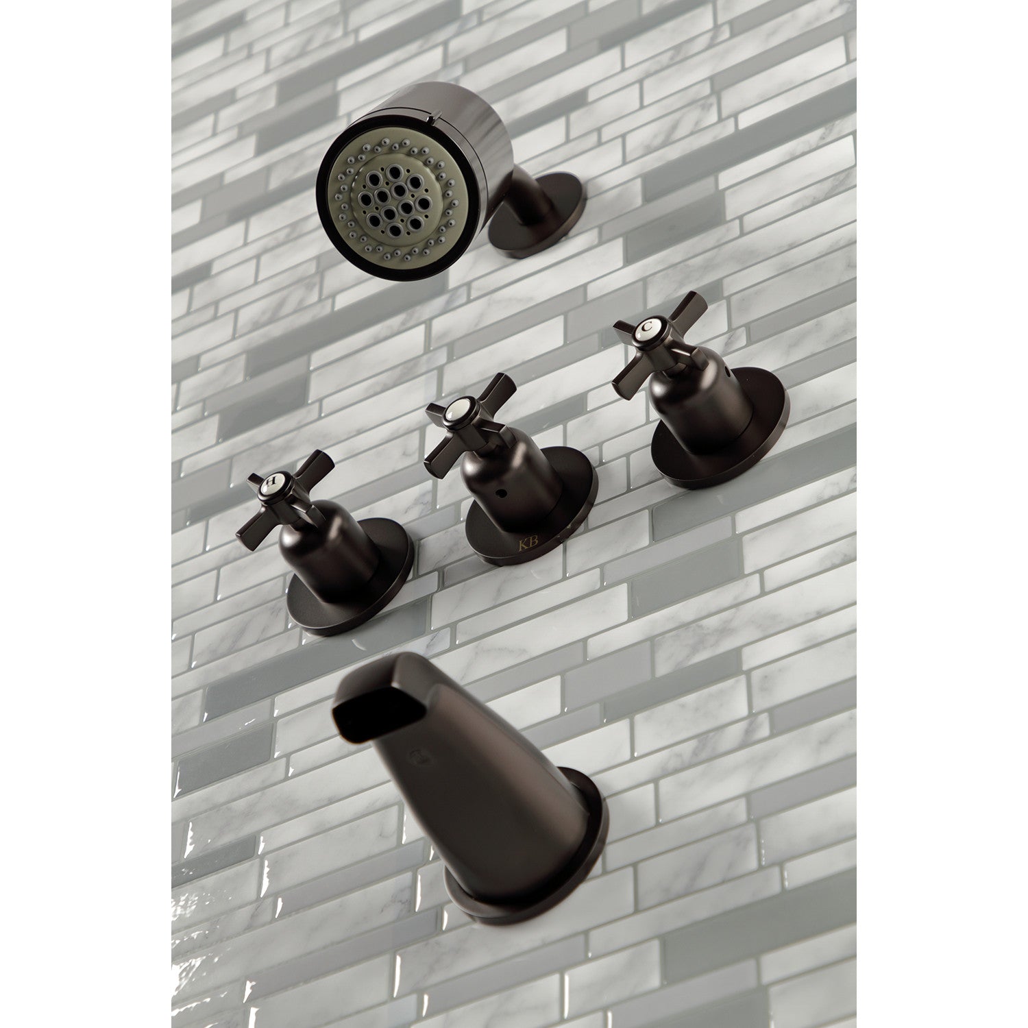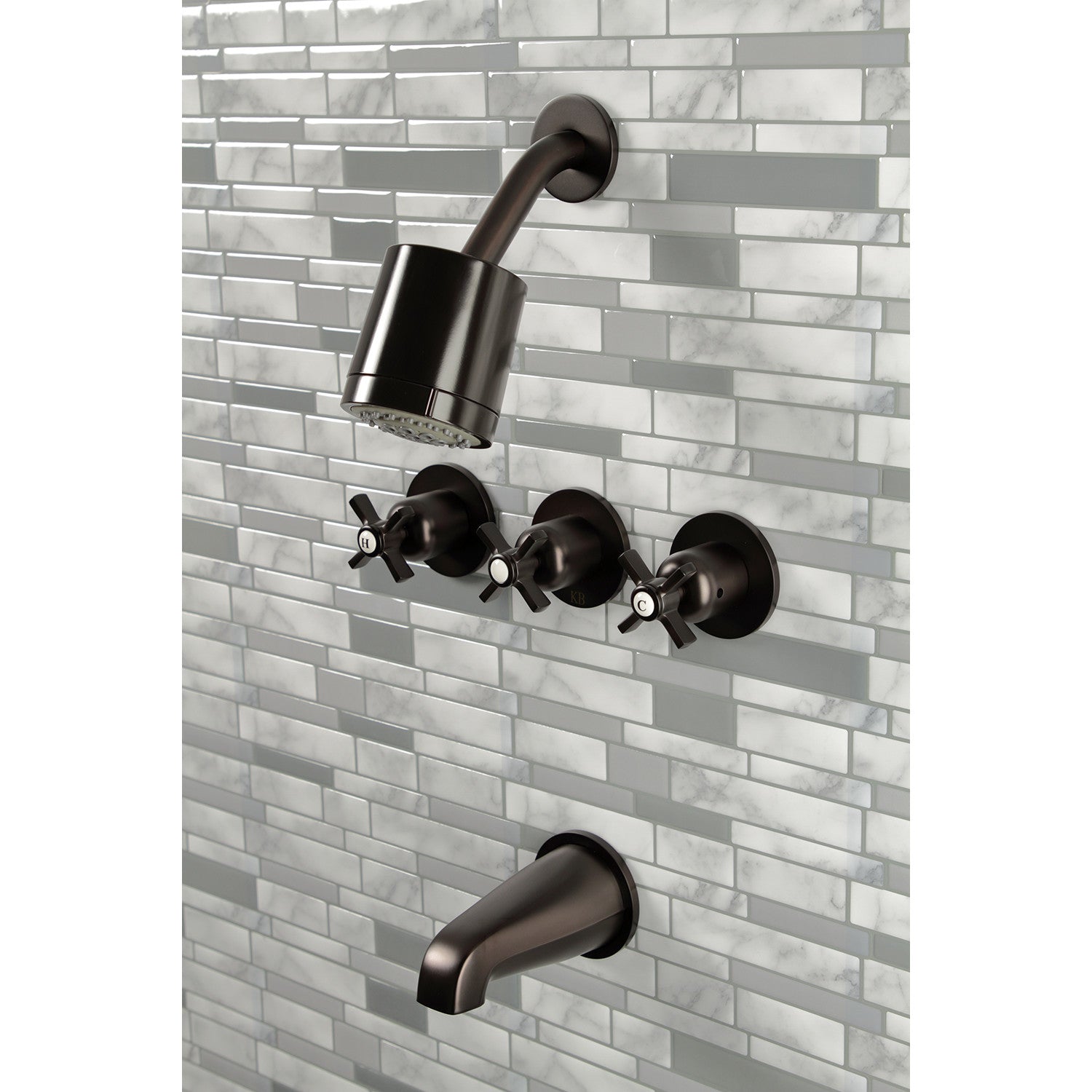 Millennium KBX8135ZX Three-Handle 5-Hole Wall Mount Tub and Shower Faucet, Oil Rubbed Bronze