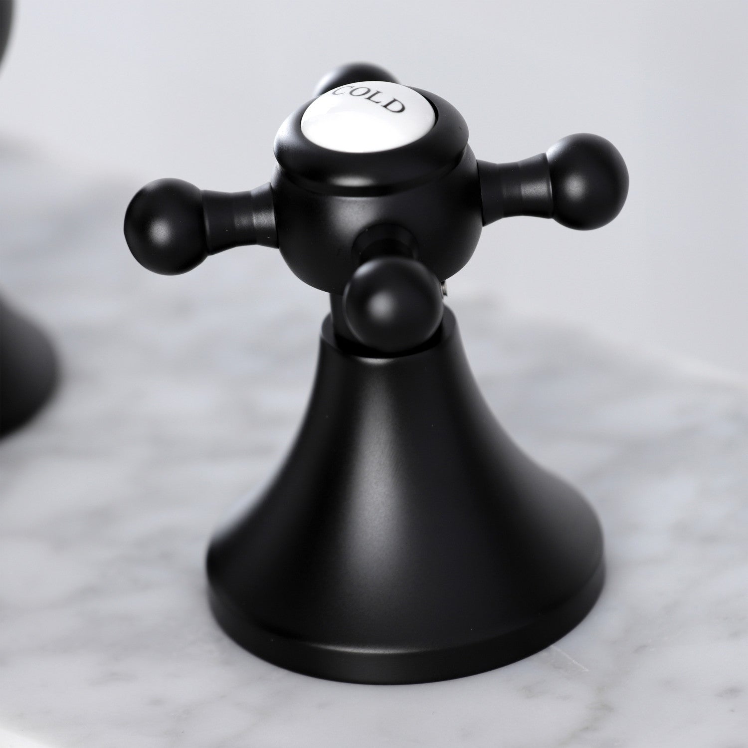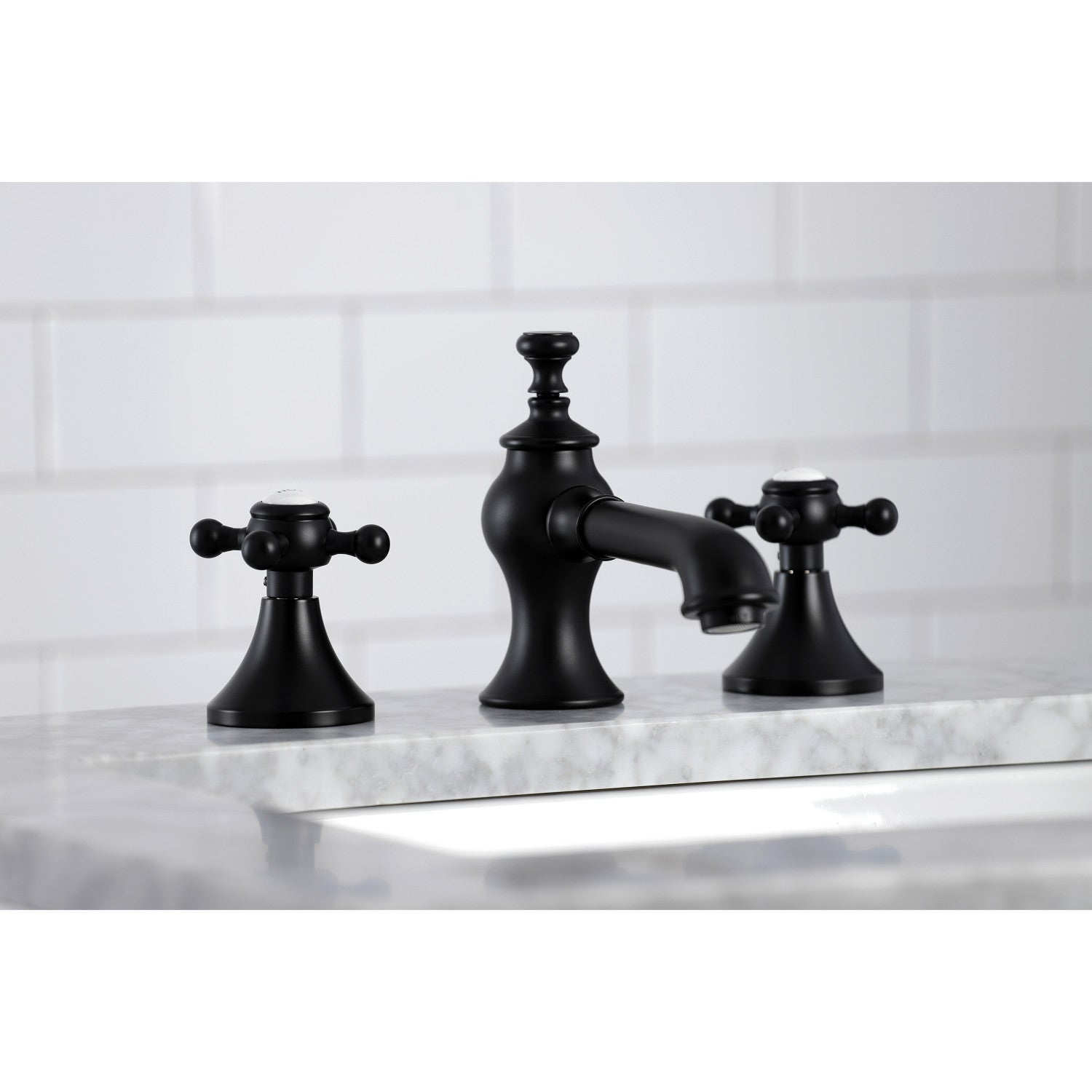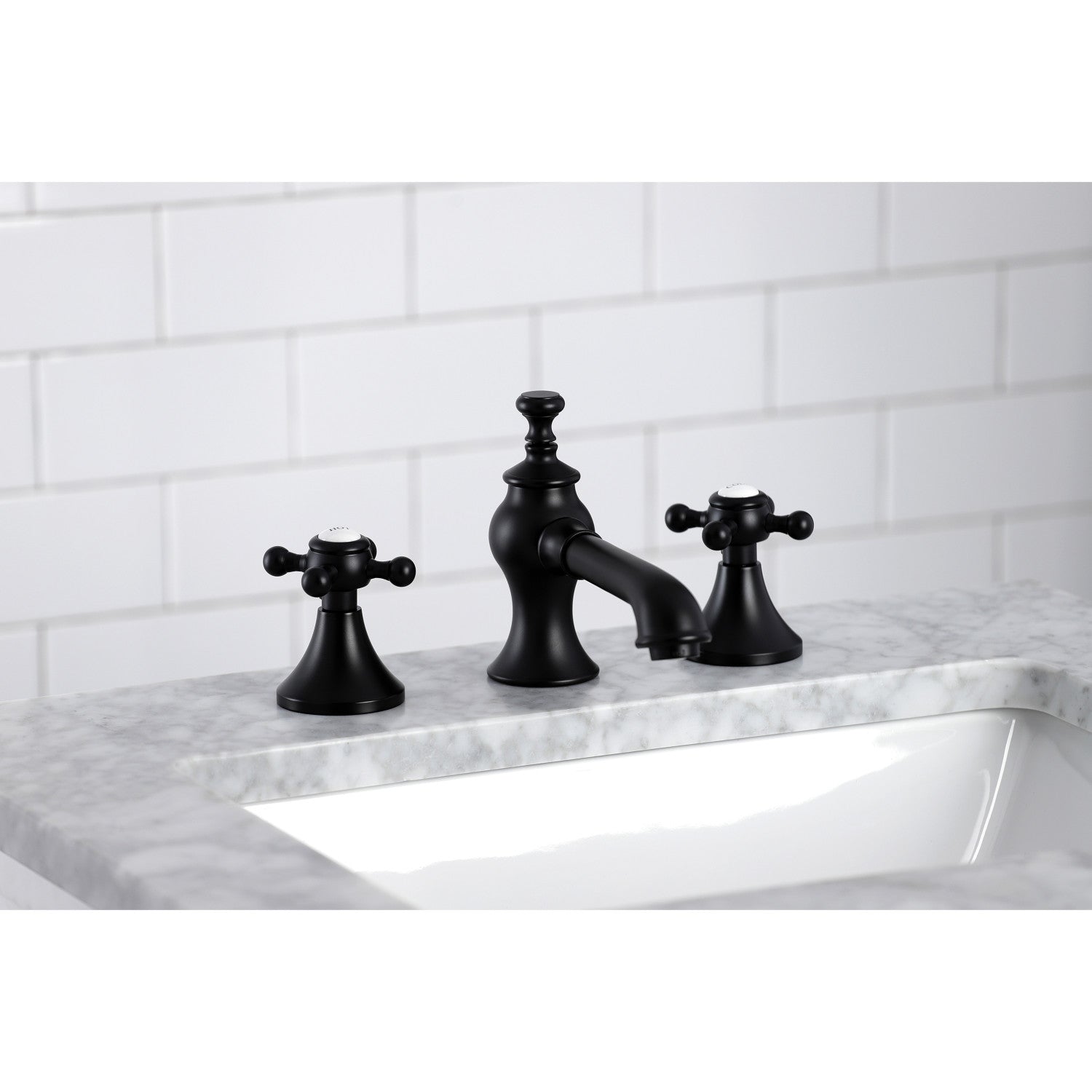 English Country KC7060BX Two-Handle 3-Hole Deck Mount Widespread Bathroom Faucet with Brass Pop-Up, Matte Black