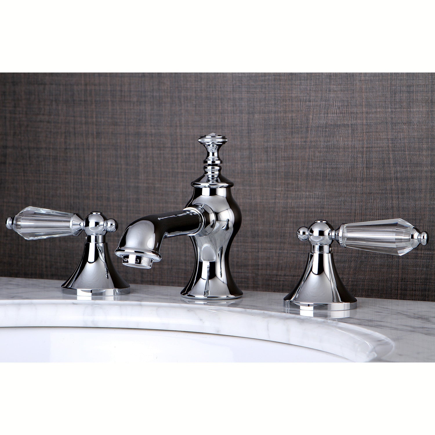 English historical splendor finds itself standing with stunning dignity in the prevalence of the refined acrylic lever handles of this faucet. Ideal for more spacious bathrooms, widespread faucets are more spread apart and feature a 3-hole installation. The Wilshire 8-inch widespread bathroom faucet with brass pop-up and its featured sturdy brass construction and premium polished chrome finish are guaranteed to glamorize your home's traditional ensemble for years to come. Inspire an atmosphere of classical grandeur with the unique appeal of timeless designs with this statement piece. A matching finish drain is also included.