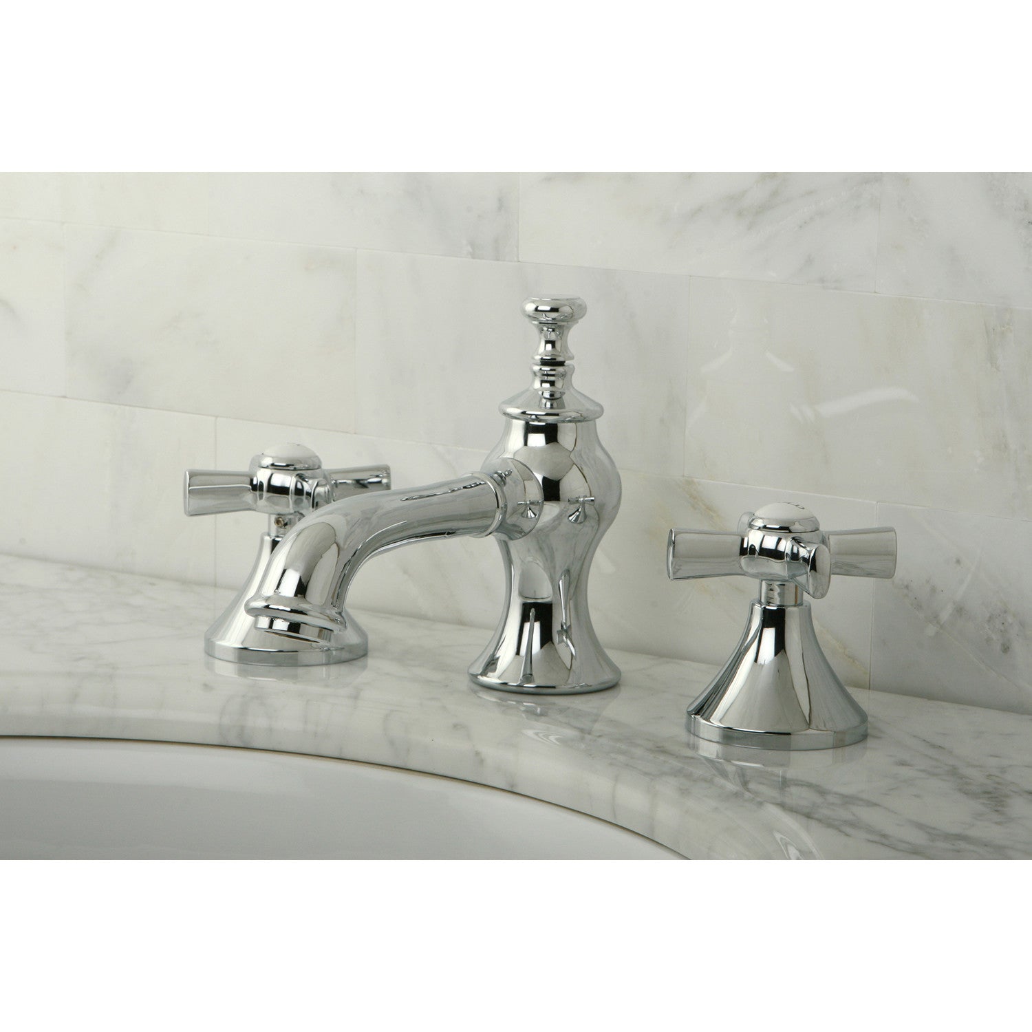 Millennium KC7061ZX Two-Handle 3-Hole Deck Mount Widespread Bathroom Faucet with Brass Pop-Up, Polished Chrome