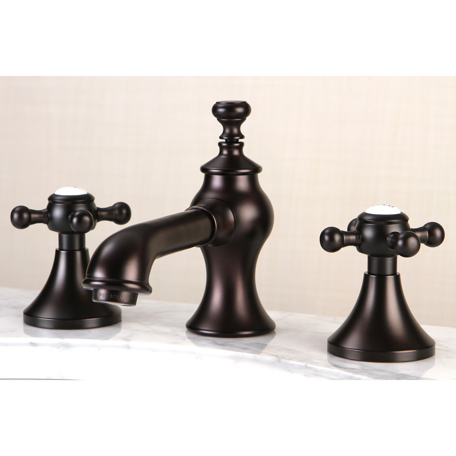 English Country KC7065BX Two-Handle 3-Hole Deck Mount Widespread Bathroom Faucet with Brass Pop-Up, Oil Rubbed Bronze