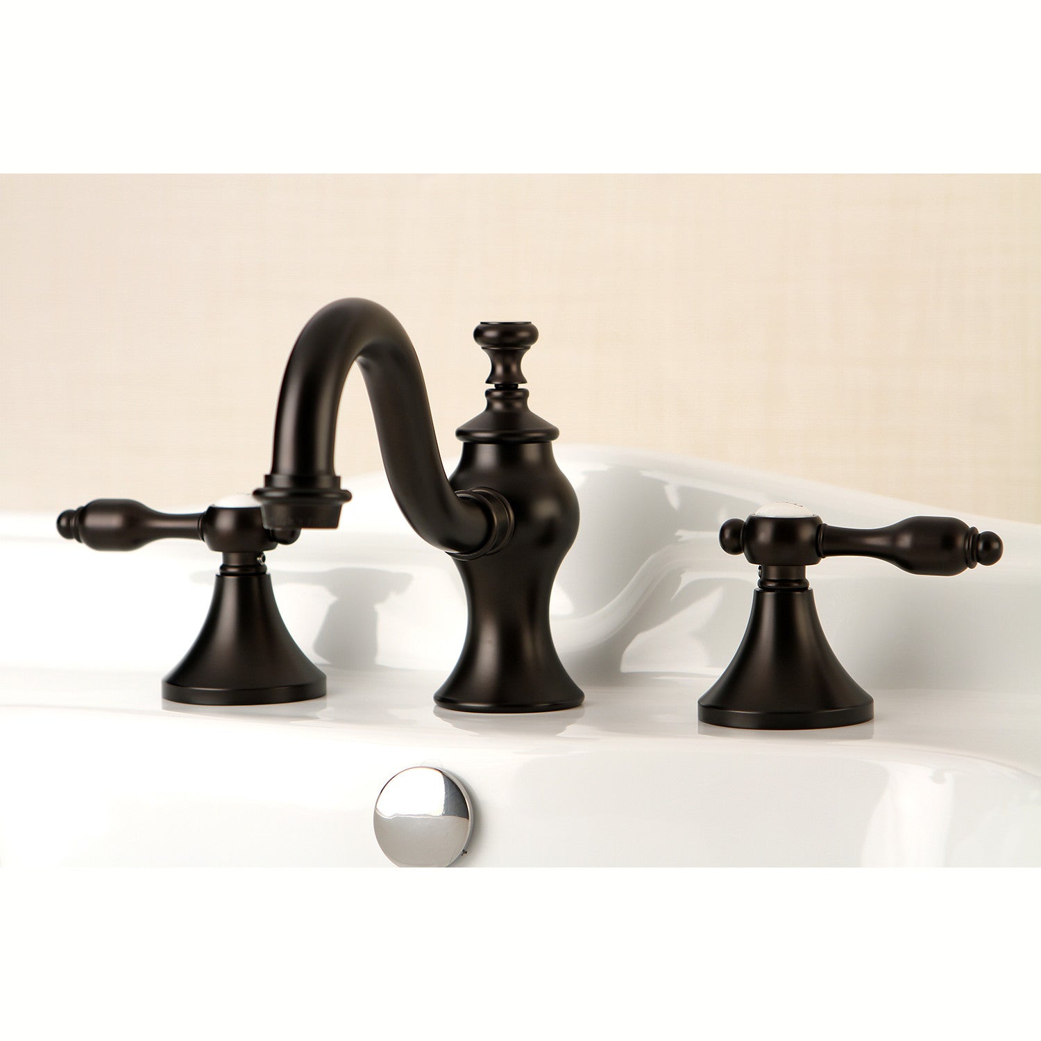 Tudor KC7165TAL Two-Handle 3-Hole Deck Mount Widespread Bathroom Faucet with Brass Pop-Up, Oil Rubbed Bronze