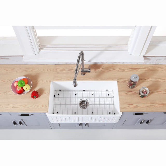 Arcticstone KGKFA361810RM 36-Inch Solid Surface White Stone Apron-Front Single Bowl Farmhouse Kitchen Sink, Matte White/Brushed