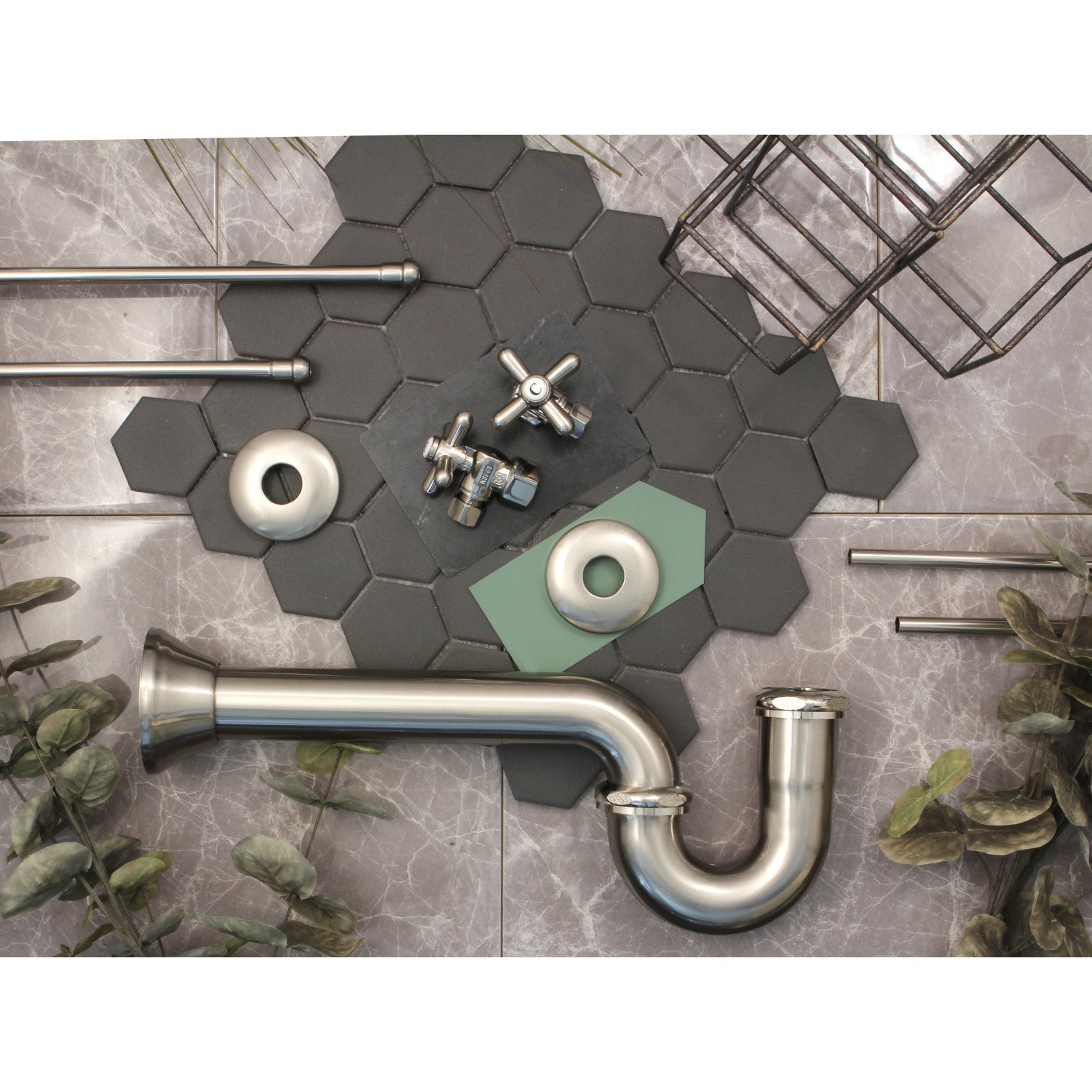 This 7-piece kitchen plumbing supply combo features all the necessary components to drain the flow of waste water efficiently. The set includes two 1/4-turn angle stops with cross handles, two 30" bullnose supply lineS, two traditional decorative flanges and a traditional 1-1/2" OD decorative p-trap. Each of these parts are constructed of high quality material and a tarnish-resistant finish, designed for long-lasting performance. Available in a variety of stunning finishes ready to match any home decor.