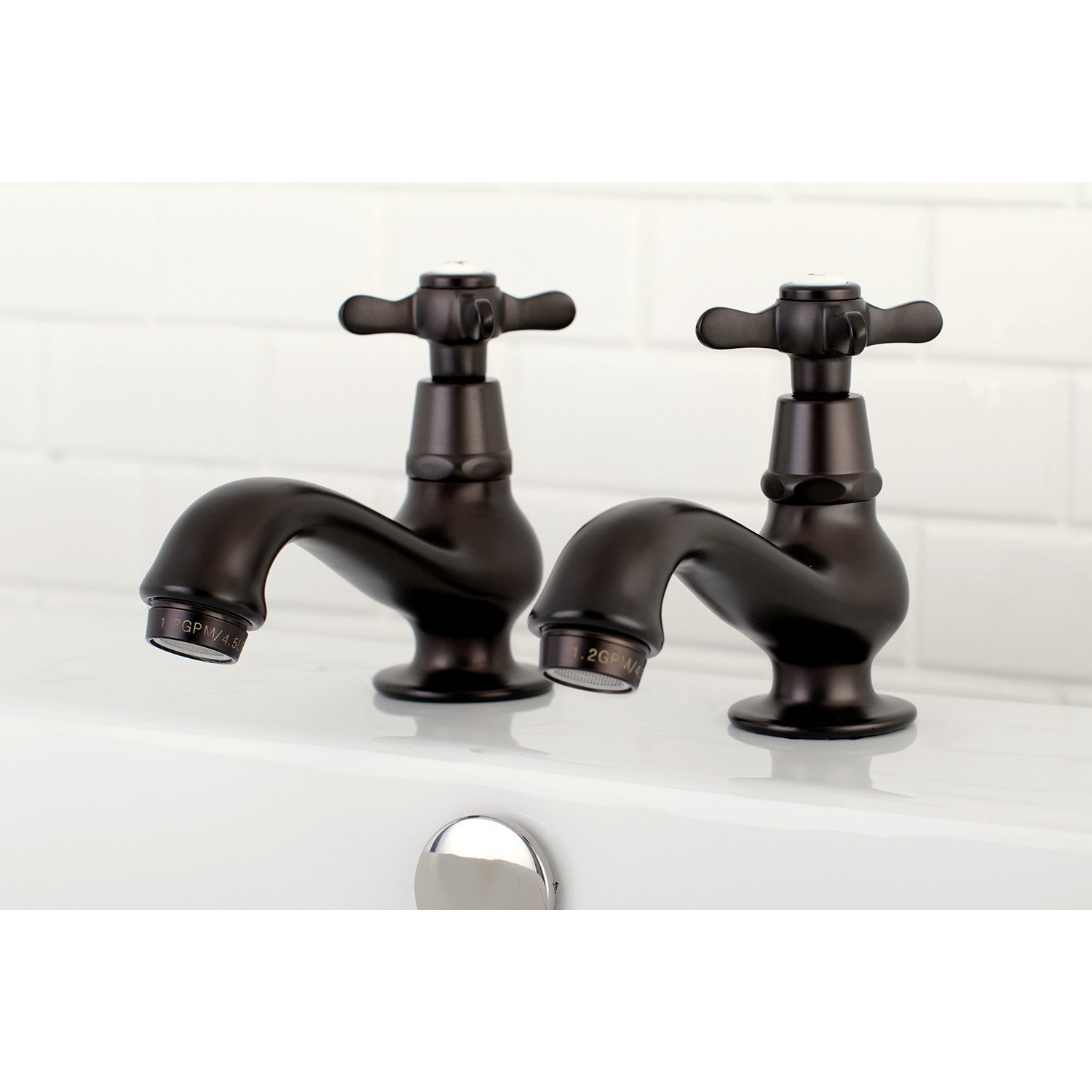 The spirit of the Victorian Era finds itself elegantly and eagerly spun into the unique design of this faucet. Basin tap faucets are a traditional design that allows users to mix water to their desired temperature within the sink basin. With cross handles for ease of use, the perfect temperature can be acquired with the separate cold and hot water taps. The Essex Basin Tap Faucet With Cross Handle and its featured sturdy brass construction and premium oil rubbed bronze finish are guaranteed to glamorize your home's traditional ensemble for years to come. This faucet adds a sheen of classical grace to your traditional style.