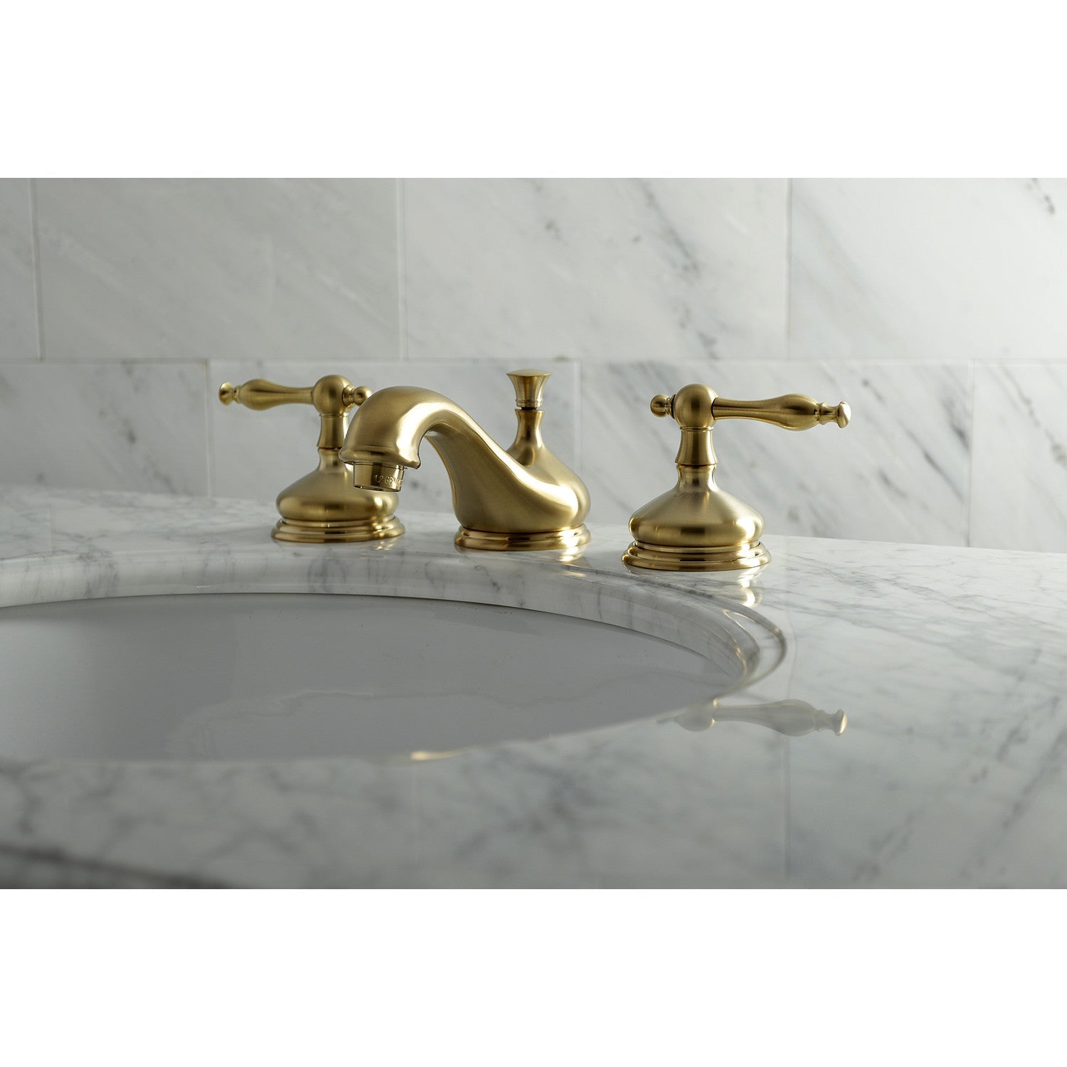 A lavish spark of traditionally stylized glamour is brought to your bathroom ensemble with this beautiful faucet. Ideal for more spacious bathrooms, widespread faucets are more spread apart and feature a 3-hole installation. The Heritage widespread bathroom faucet and its featured sturdy brass construction and premium brushed brass finish are guaranteed to glamorize your home's traditional ensemble for years to come. Celebrate sophistication and traditional decor with this statement piece. A matching finish drain is also included.