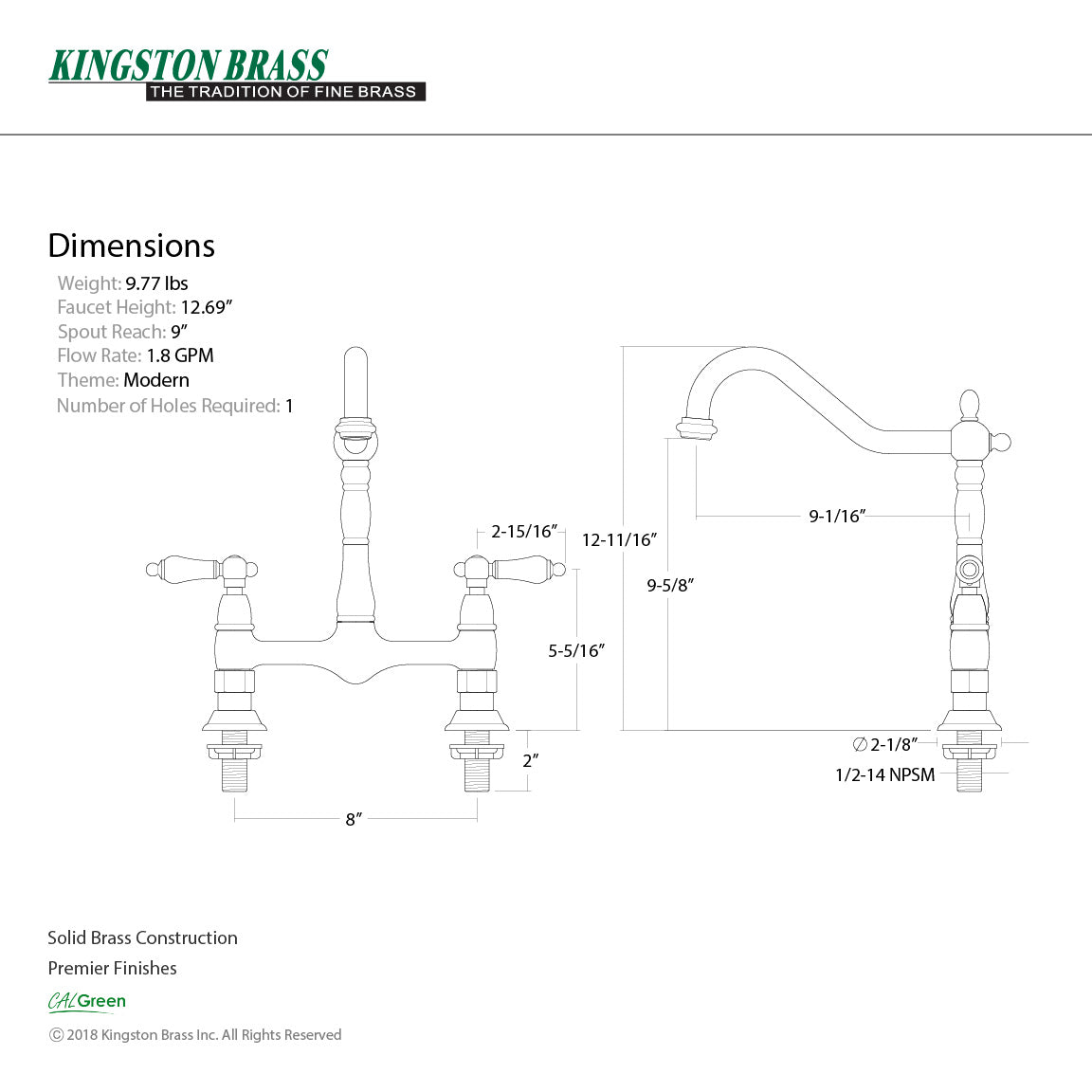 - 1.8 GPM/6.8 LPM spout flow rate at 60 PSI