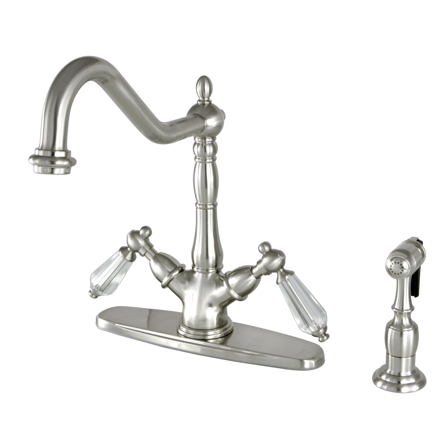 Wilshire KS1238WLLBS Two-Handle 2-or-4 Hole Deck Mount Kitchen Faucet with Brass Sprayer, Brushed Nickel