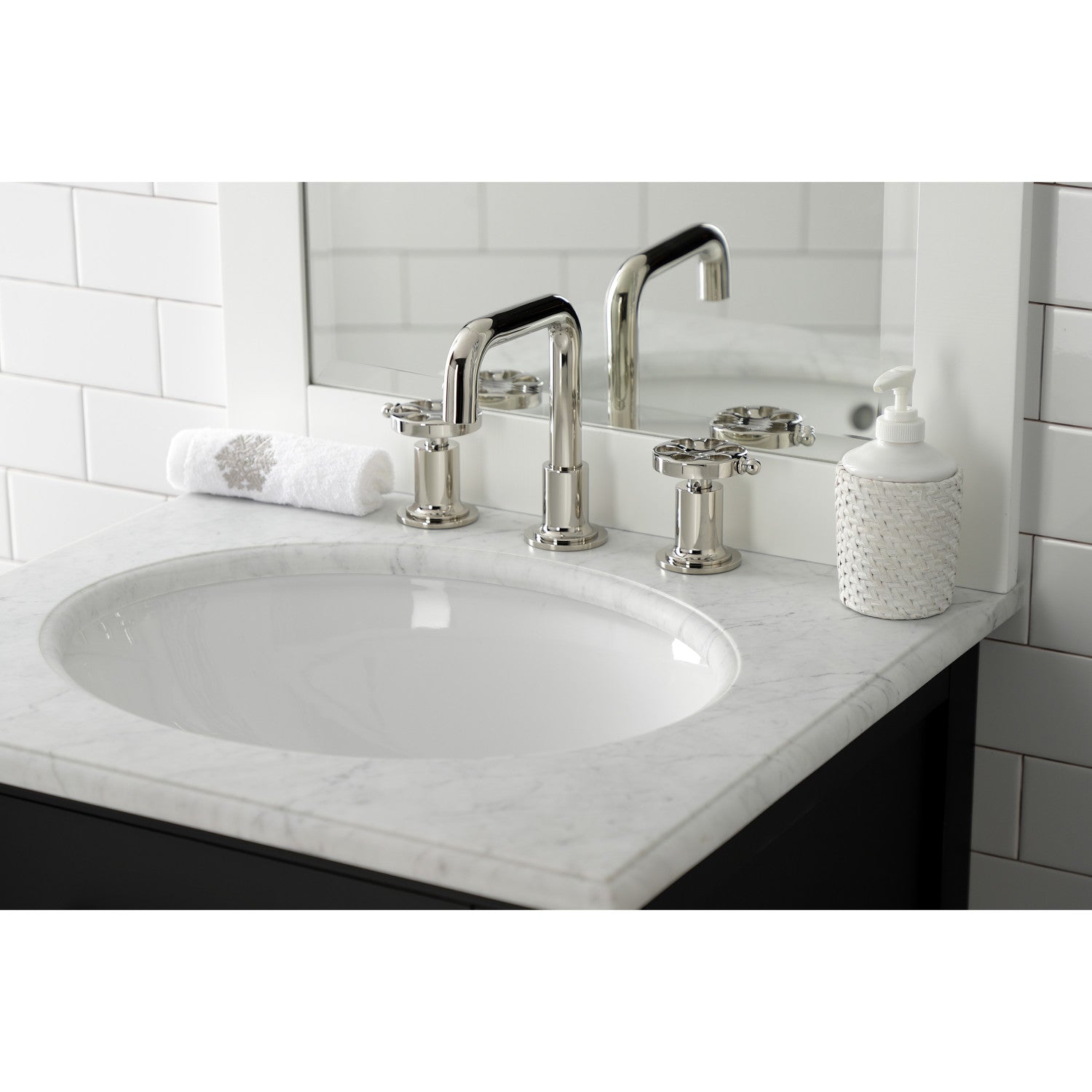The exquisite design of this faucet tastefully flatters the elegant architecture of traditional homes with its fine detailing. Ideal for more spacious bathrooms, widespread faucets are more spread apart and feature a 3-hole installation. The Belknap widespread bathroom faucet with push pop-up and its featured sturdy brass construction and premium polished nickel finish are guaranteed to glamorize your home's traditional ensemble for years to come. A matching finish drain is also included.
