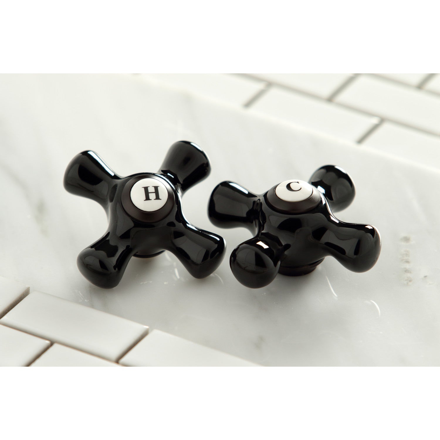 Crafted in commendations to English nobility, the exemplary design of this faucet manifests regality and elegance with its black porcelain handles. Kingston Brass vessel sink faucets perfectly complement the exquisite artistry of vessel sinks. Designed to handle the extra clearance needed for pairing with a vessel sink, this faucet boasts 8-1/4 inch of spout clearance. The Duchess Vessel Sink Faucet and its featured sturdy brass construction and premium oil rubbed bronze finish are guaranteed to glamorize your home's traditional ensemble for years to come. Glamorize your home today with the traditional elegance of this faucet.