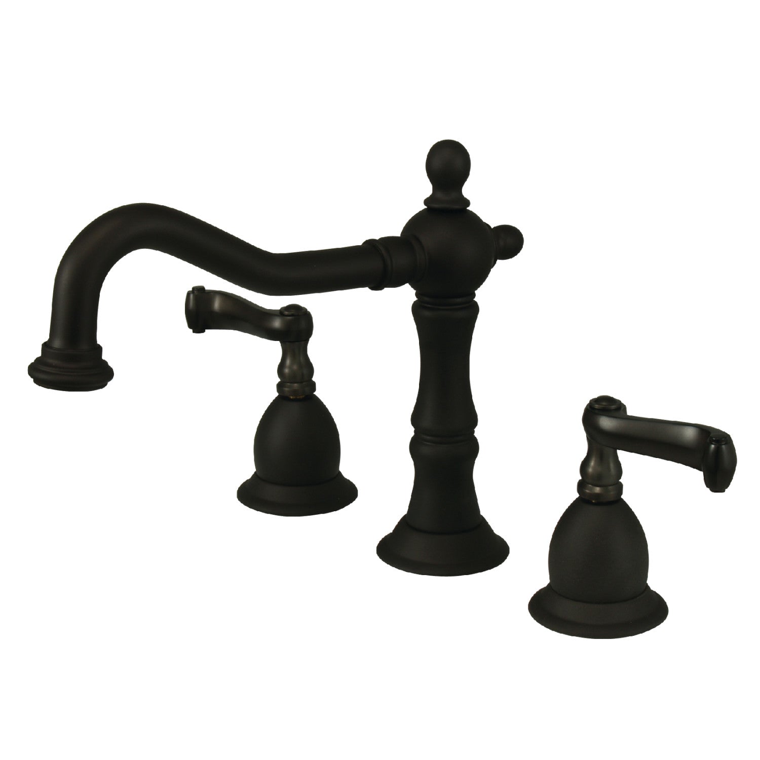 Heritage KS1975FL Two-Handle 3-Hole Deck Mount Widespread Bathroom Faucet with Brass Pop-Up, Oil Rubbed Bronze