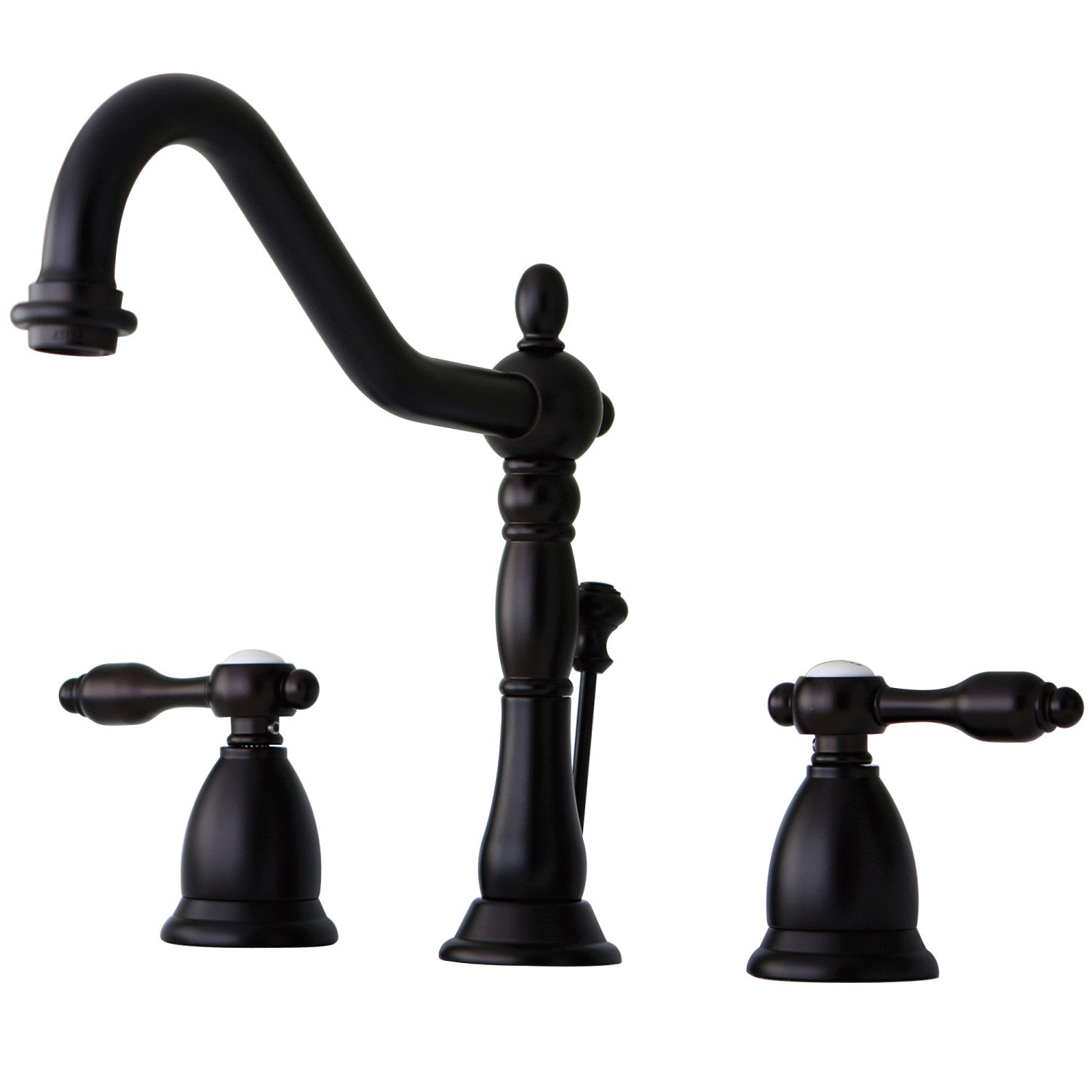 Offering a nod toward the past, this faucet is beautifully inspired by the vintage elegance of mid-19th Century design. Ideal for more spacious bathrooms, widespread faucets are more spread apart and feature a 3-hole installation. The Tudor 8-inch widespread bathroom faucet with brass pop-up and its featured sturdy brass construction and premium oil rubbed bronze finish are guaranteed to glamorize your home's traditional ensemble for years to come. A unique and classically enchanting personality is embodied in this centerpiece. A matching finish drain is also included.