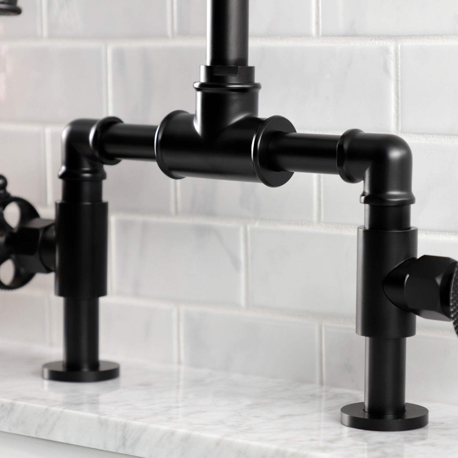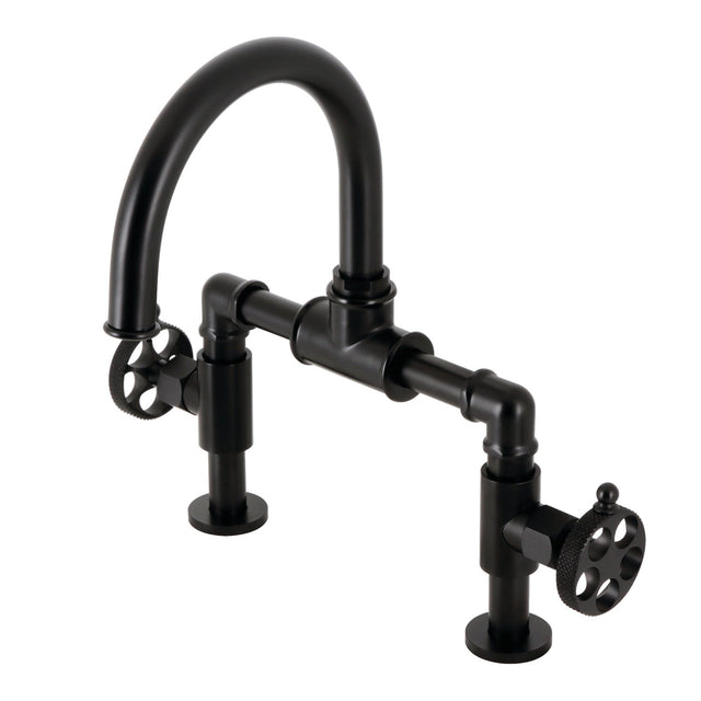 Webb KS2170RKX Two-Handle 2-Hole Deck Mount Bridge Bathroom Faucet with Knurled Handle and Push Pop-Up Drain, Matte Black