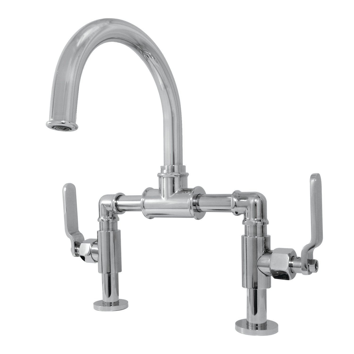 The exquisite design of this faucet tastefully flatters the elegant architecture of traditional homes with its fine detailing. Elegantly designed, the exquisite arch connecting the spout to the handles provides an added aesthetic appeal to make for more of a statement piece. Additionally, the 7-15/16 inch of spout clearance make for a very easy hand washing experience with plenty of room for other tasks. The Whitaker industrial style lever handle bridge bathroom faucet and its featured sturdy brass construction and premium polished chrome finish are guaranteed to glamorize your home's traditional ensemble for years to come. A matching finish push pop-up drain is also included.