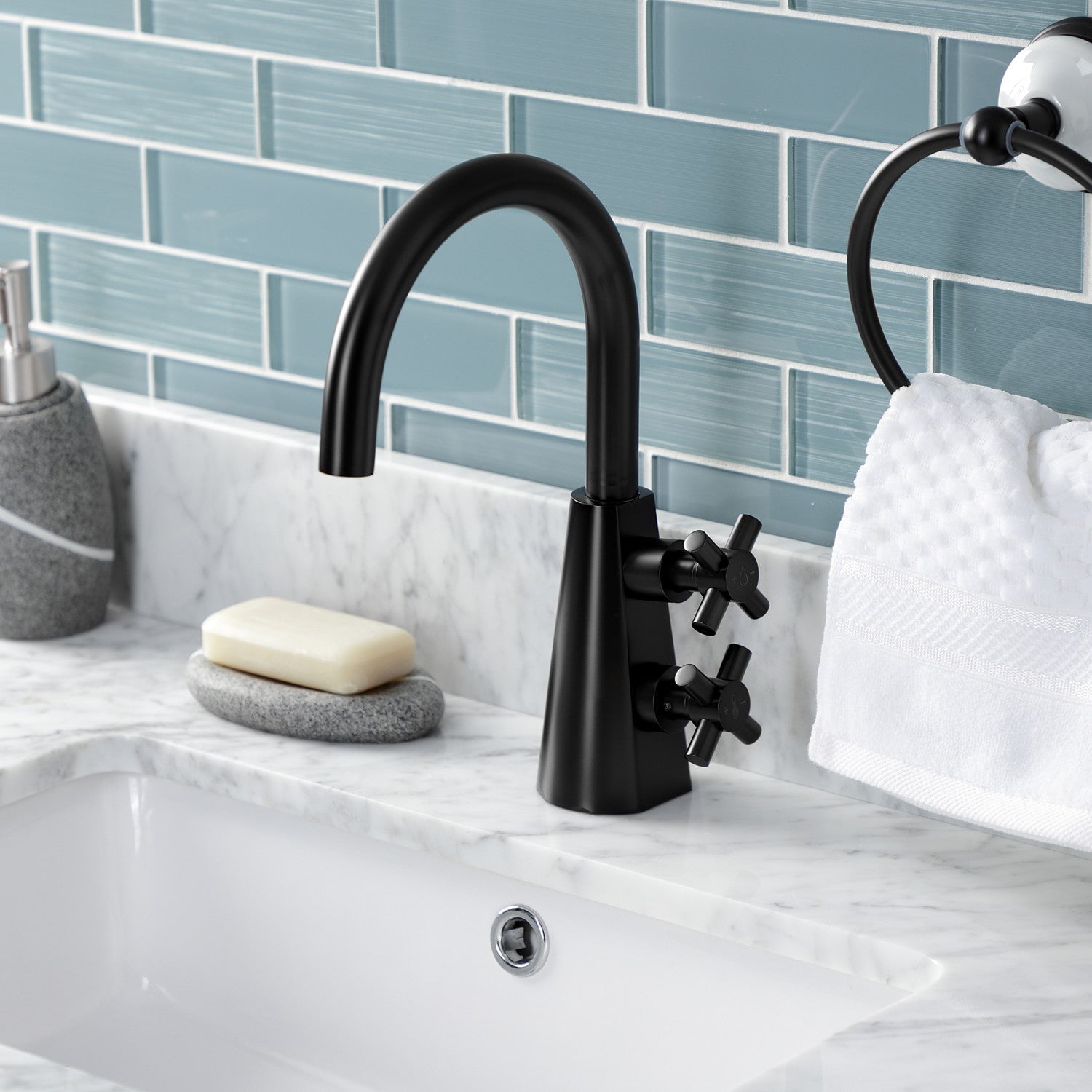 The Brancusi faucet in Kingston Brass's Cosntantine collection is designed to make a bold statement. The unique vertical stacked handle design allows for independent control of temperature and flow in a compact, single hole form factor. The top handle controls flow volume while the bottom handle controls temperature through a ceramic disc cartridge. The clean lines and arced J-spout create a powerful contemporary silhouette without sacrificing utility. Solid brass construction and high grade matte black finish assure the longevity of your fixture. Includes finish match pop-up drain to perfectly coordinate your bathroom.