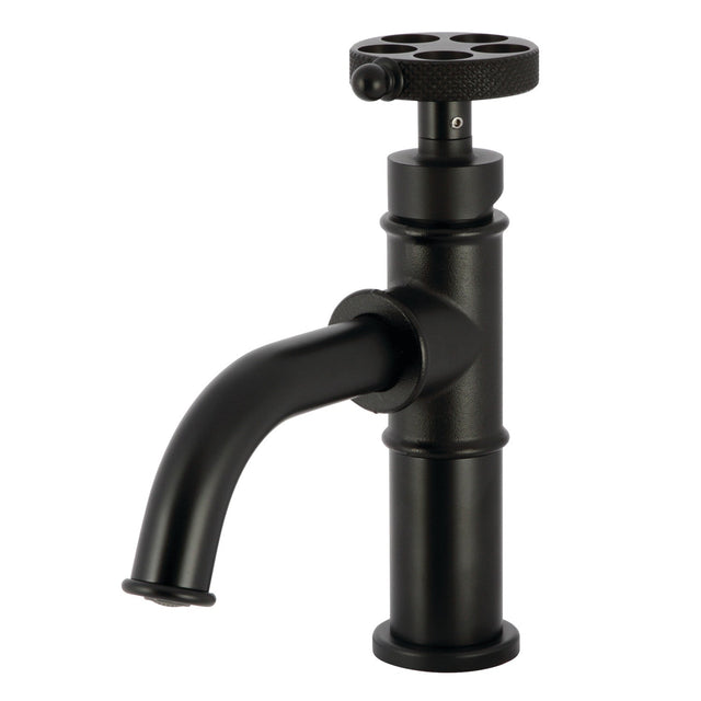 Webb KS2820RKX Single-Handle 1-Hole Deck Mount Bathroom Faucet with Knurled Handle and Push Pop-Up Drain, Matte Black